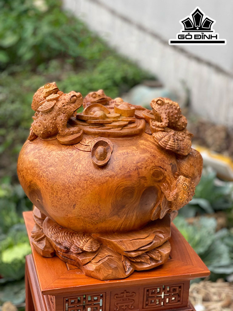 Tượng Ngũ Cóc Trấn Bình Gỗ Nu Hương Cao 40 Ngang 45 Sâu 38 (cm)
