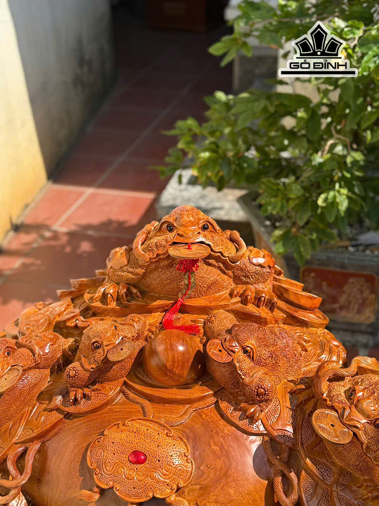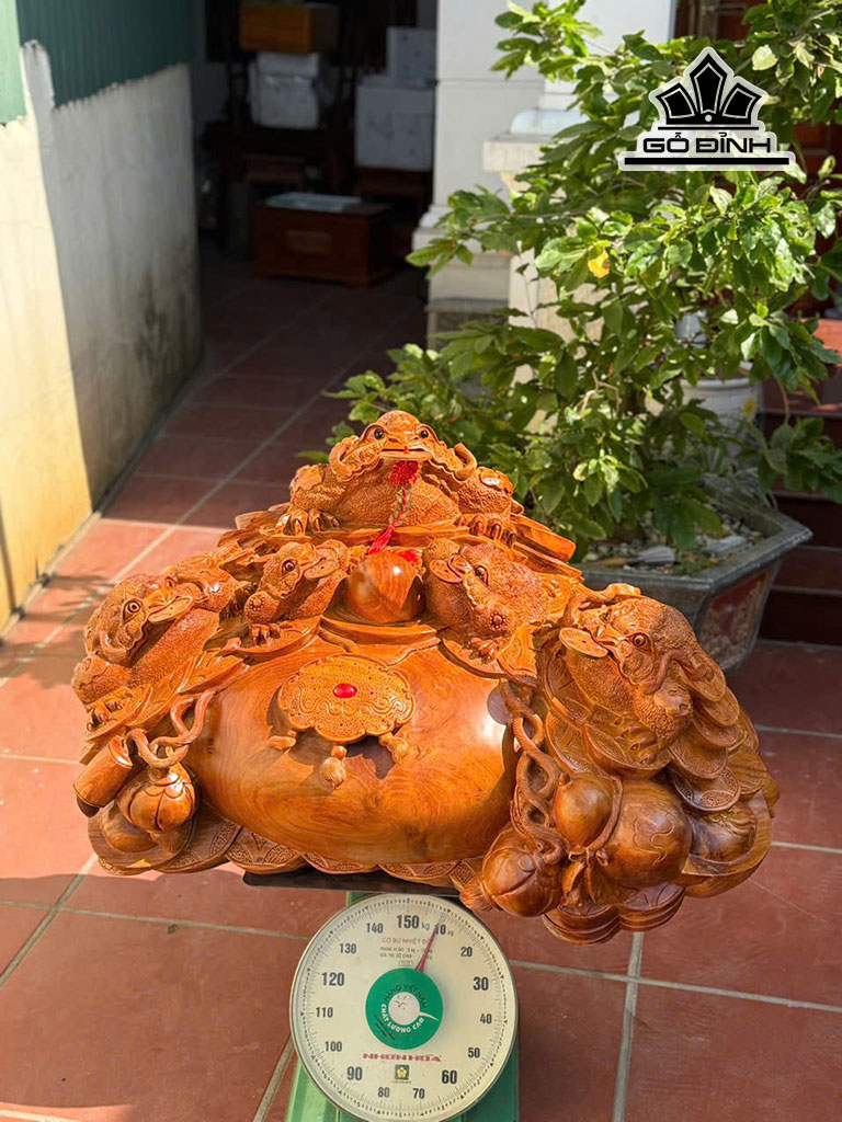 Tượng Ngũ Cóc Trấn Chum Tiền Gỗ Hương Cao 58 Ngang 100 Sâu 70 (cm)
