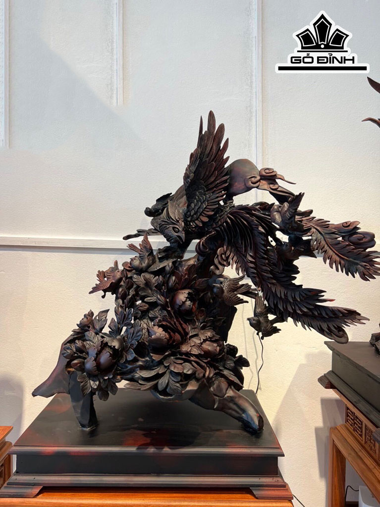 Tượng Ngũ Điểu Chầu Hoàng Gỗ Trắc Cao 87 Ngang 78 Sâu 47 (cm)