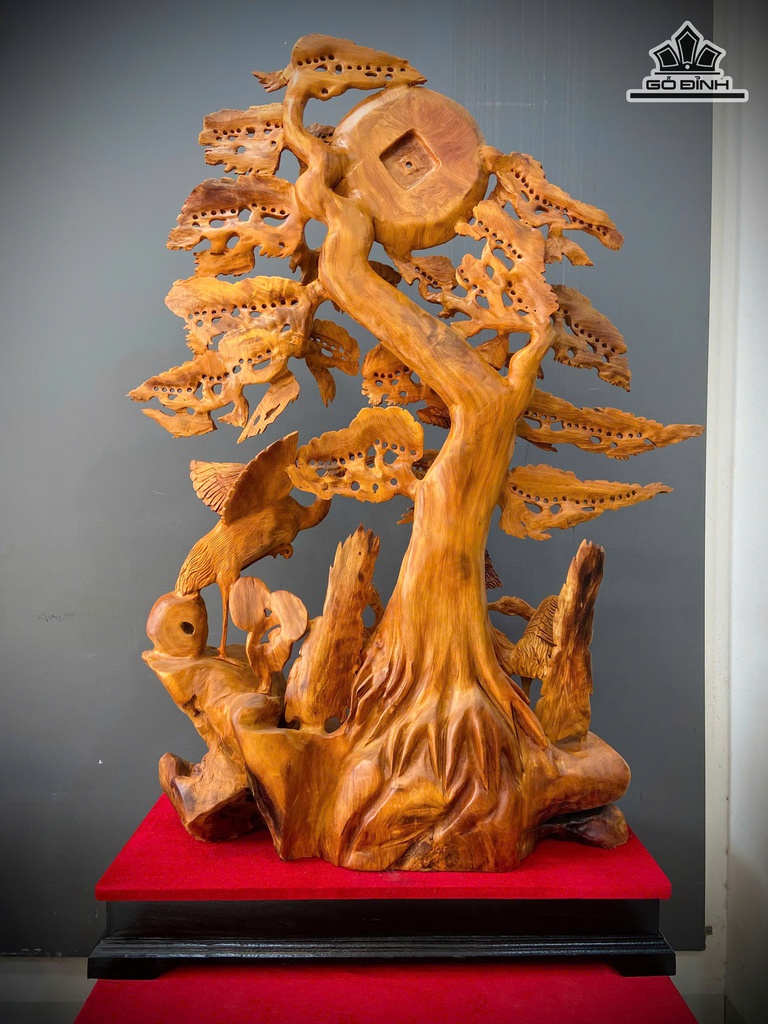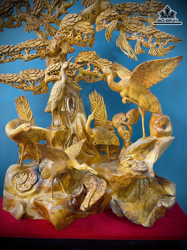 Tượng Ngũ Hạc Quần Tùng Gỗ Hương Cao 118 Ngang 80 Sâu 33 (cm)