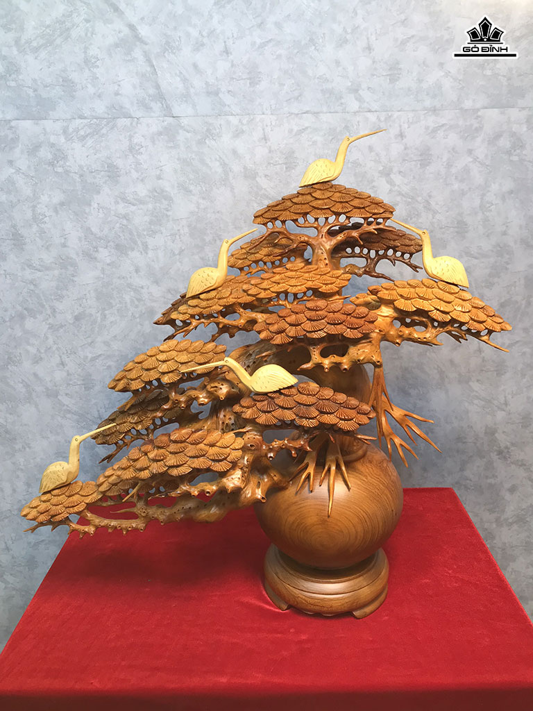 Tượng Ngũ Hạc Quần Tùng Gỗ Hương Cao 55 Ngang 56 Sâu 23 (cm)