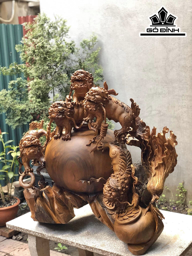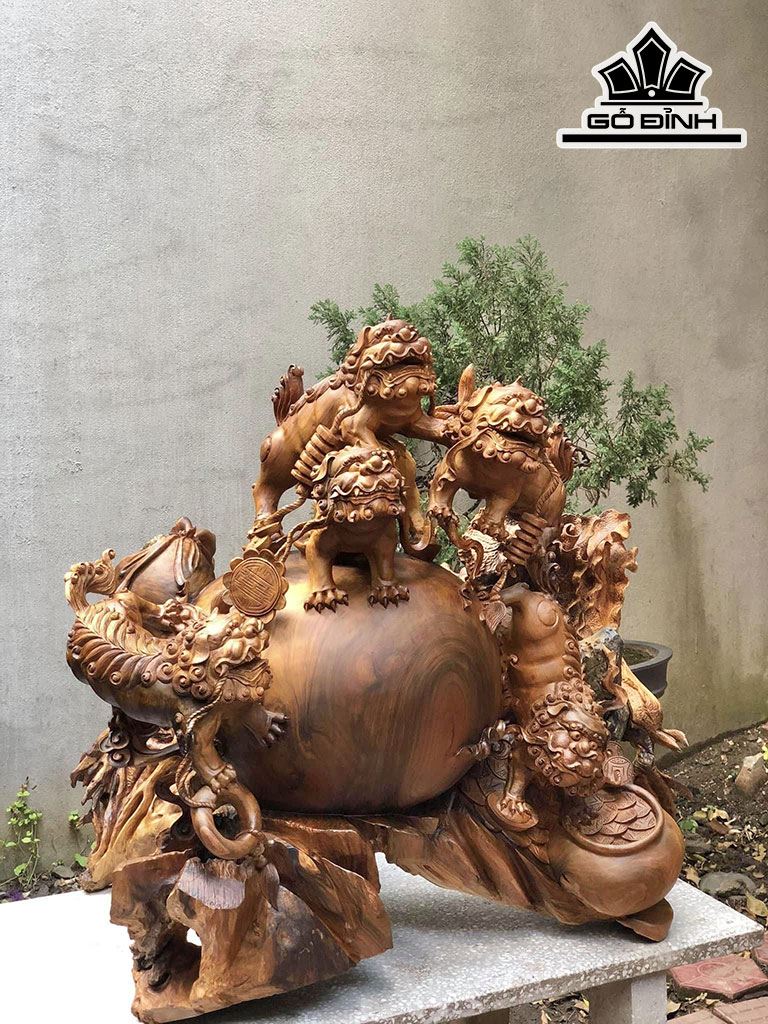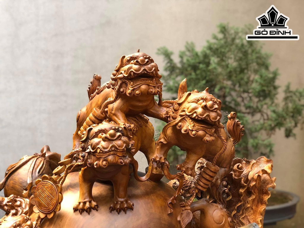 Tượng Ngũ Nghê Gỗ Bách Xanh Cao 103 Ngang 105 Sâu 86 (cm)