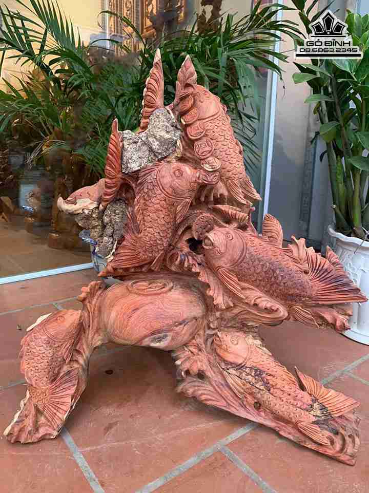 Tượng Ngũ Ngư Chấn Lộc Gỗ Hương Cao 71 Ngang 65 Sâu 50 (cm)