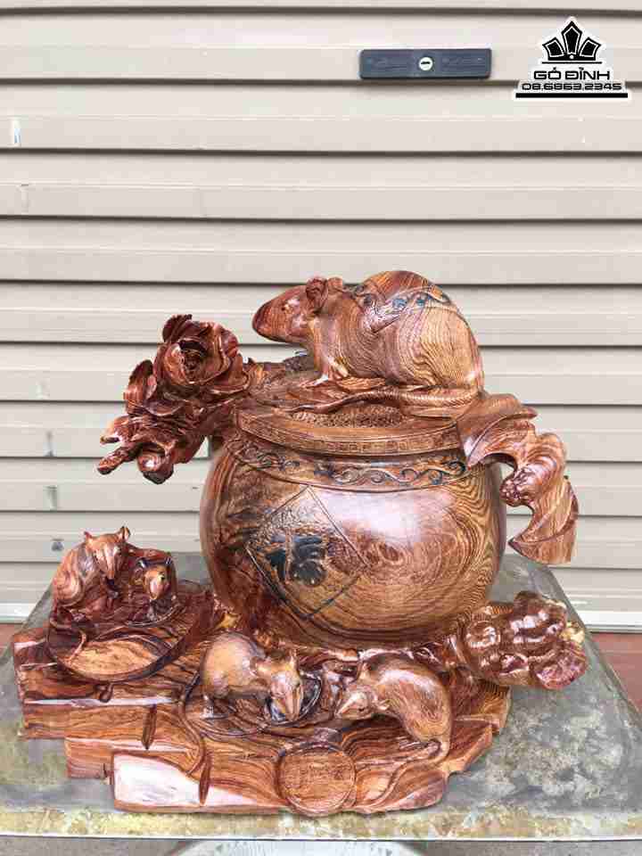 Tượng Ngũ Tý Gỗ Cẩm Rộng 40 Sâu 30 Cao 28 (cm)
