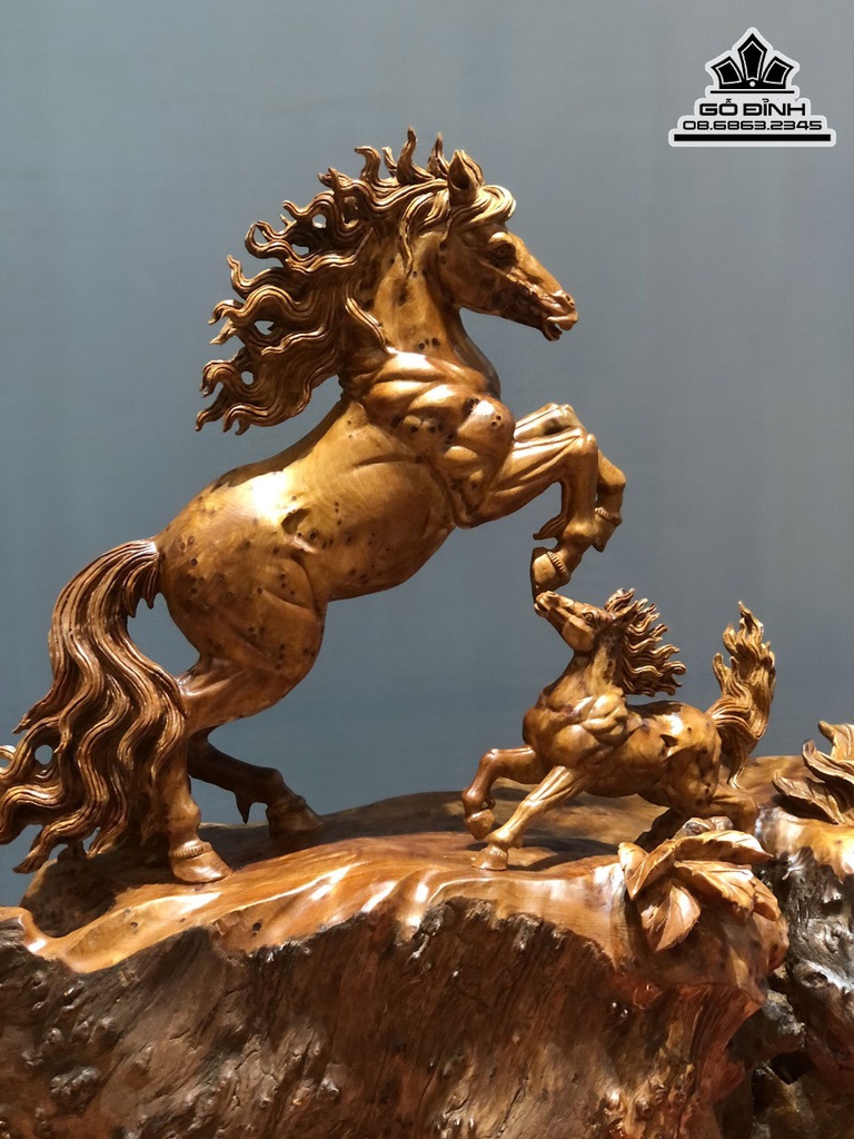 Tượng Ngựa Mẫu Tử Gỗ Ngọc Am