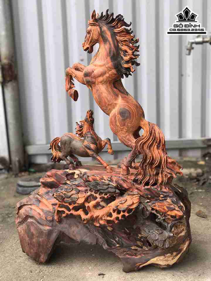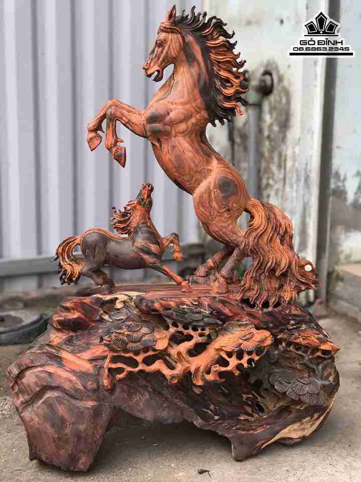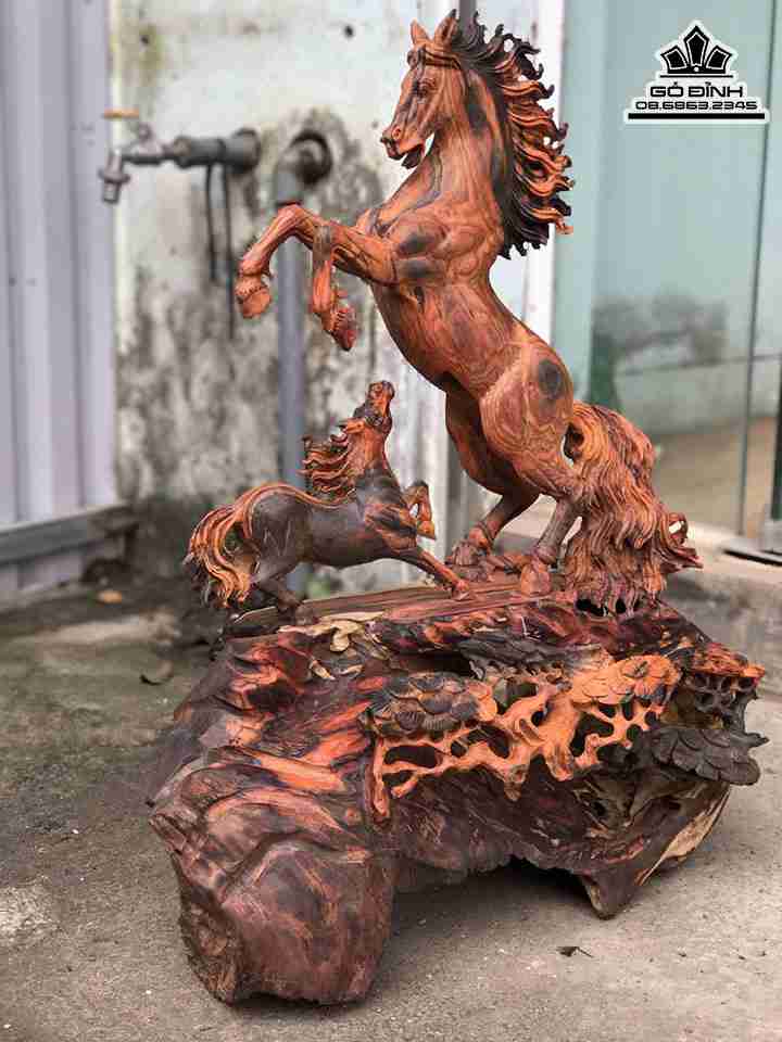Tượng Ngựa Mẫu Tử Gỗ Trắc Cao 66 Rộng 50 Dày 30 (cm)