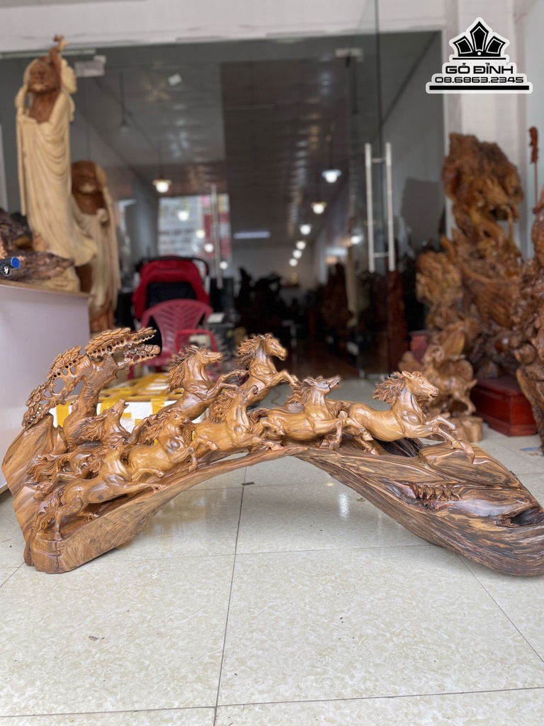 Tượng Ngựa Phong Thủy (Bát Mã) Gỗ Bách Xanh