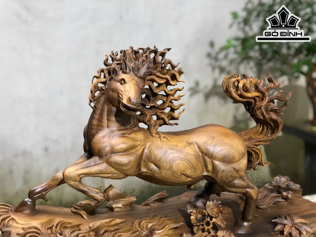 Tượng Ngựa Phong Thủy Gỗ Bách Xanh Cao 45 Ngang 66 Sâu 26 (cm)