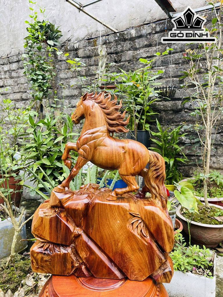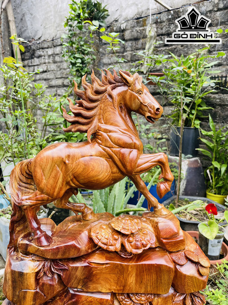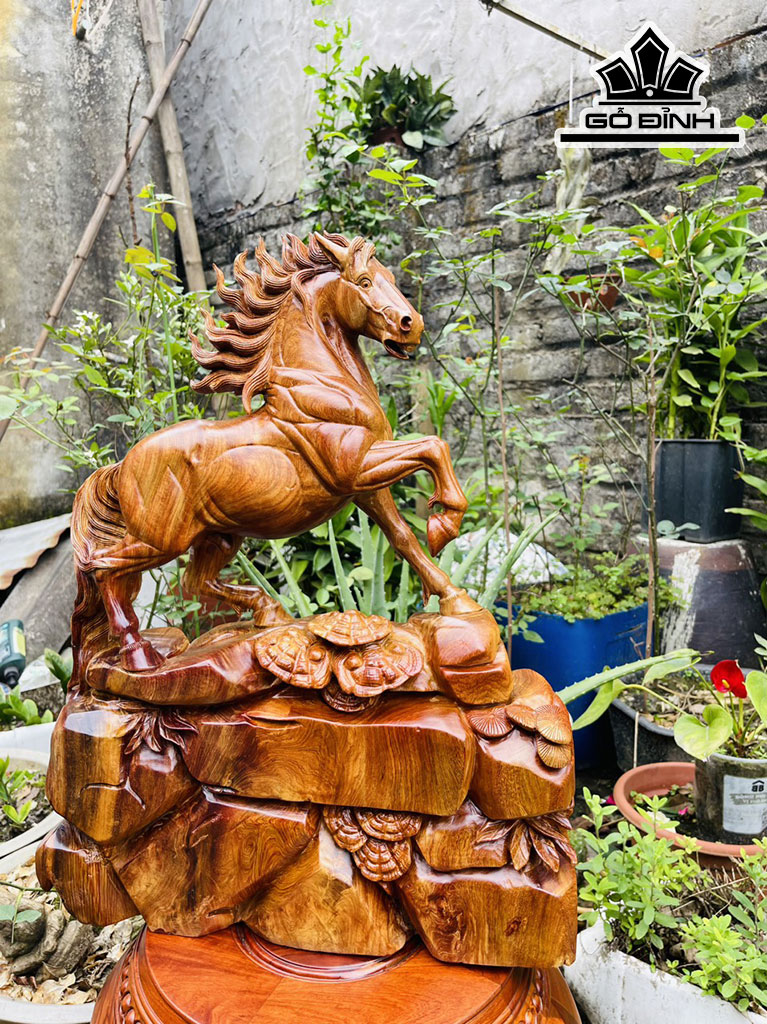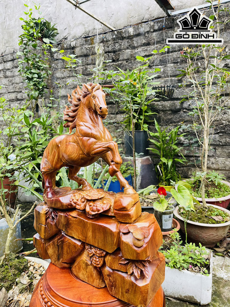 Tượng Ngựa Phong Thủy Gỗ Hương Cao 52 Ngang 41 Sâu 13 (cm)