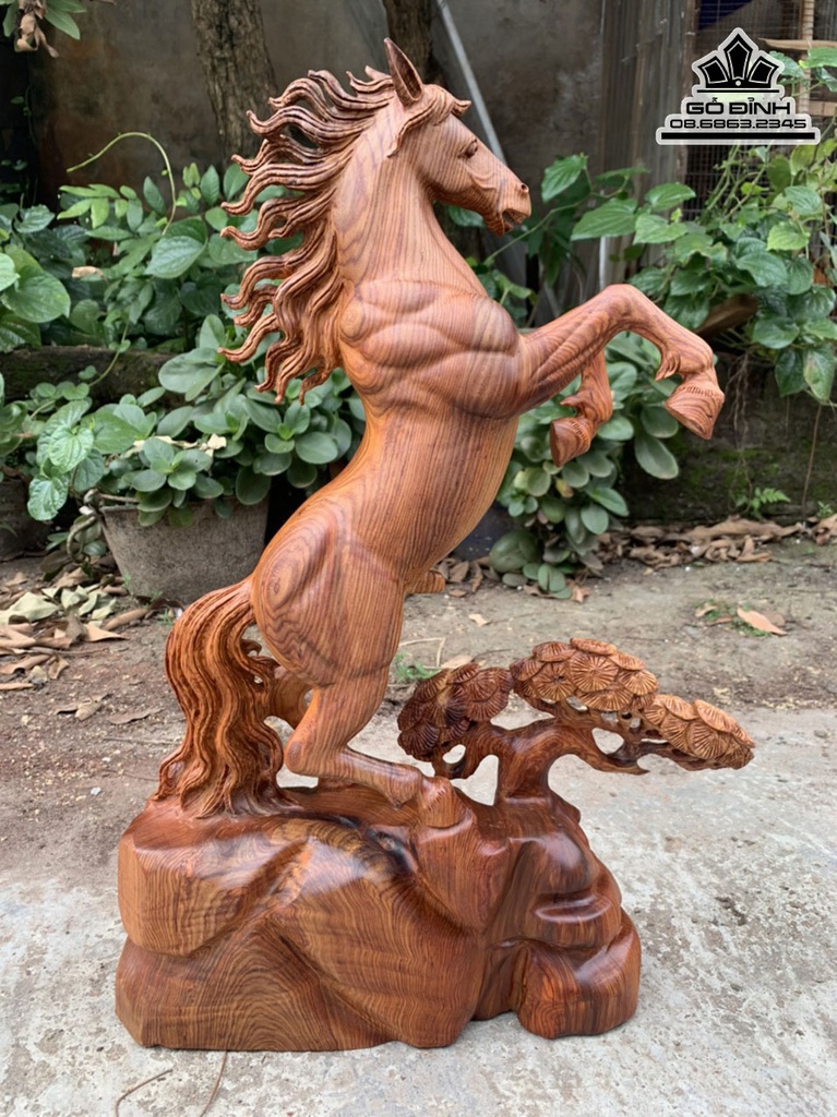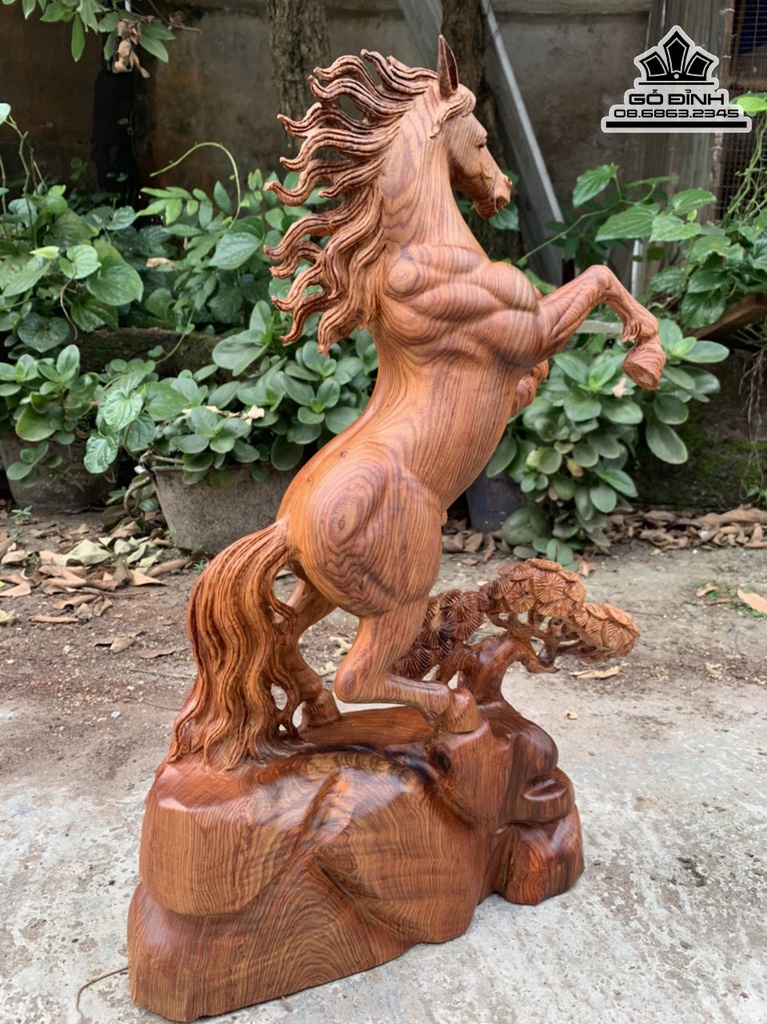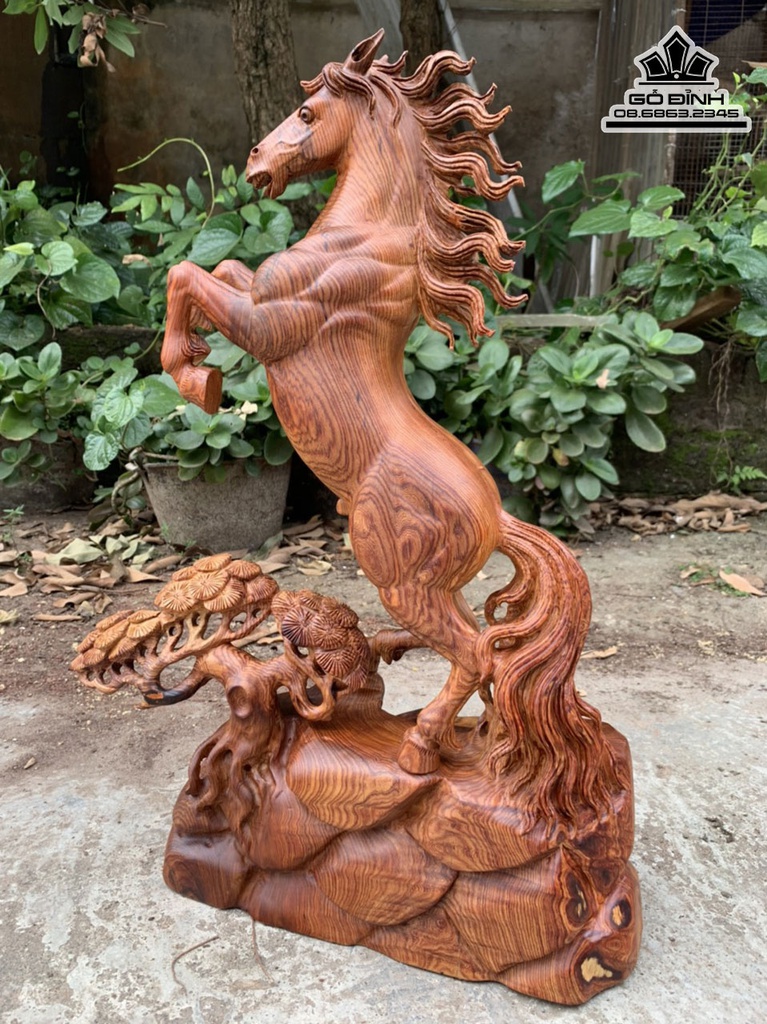 Tượng Ngựa Phong Thủy (Nhất Mã) Gỗ Cẩm Cao 54 Ngang 40 Sâu 13 (cm)