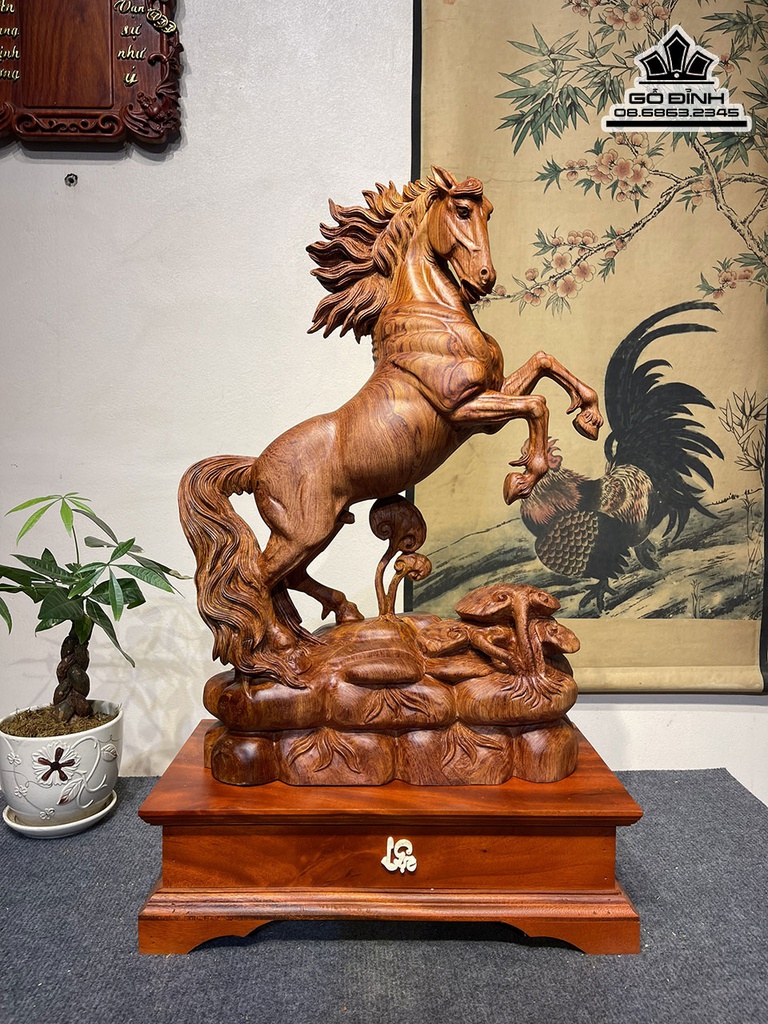 Tượng Ngựa Phong Thủy (Nhất Mã) Gỗ Hương Đá