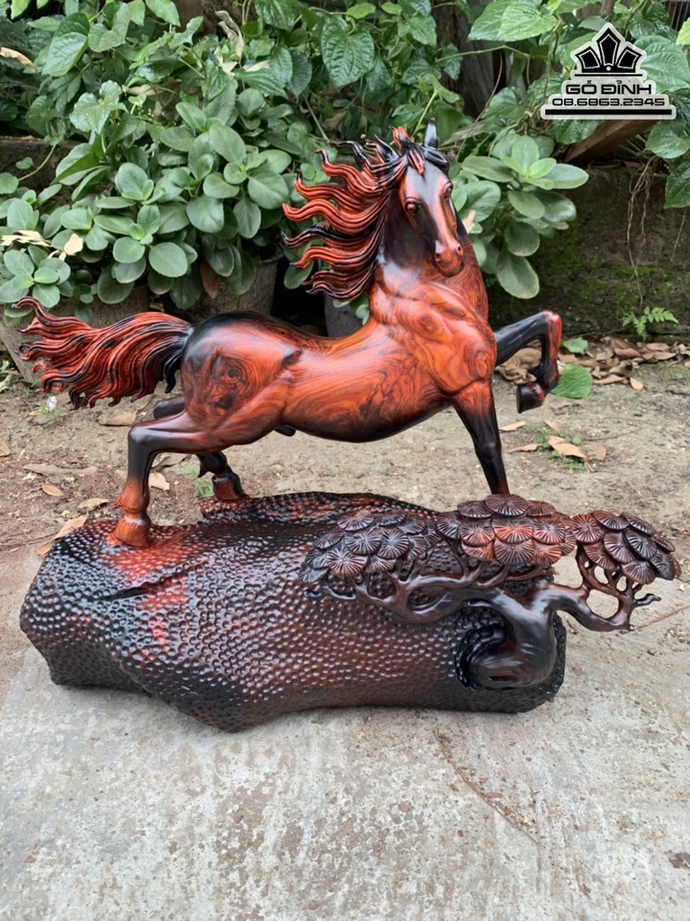 Tượng Ngựa Phong Thủy (Nhất Mã) Gỗ Trắc Cao 45 Ngang 55 Sâu 26 (cm)
