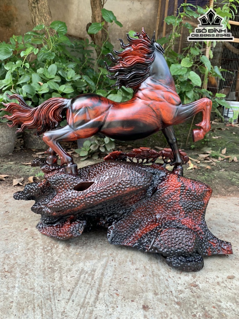 Tượng Ngựa Phong Thủy (Nhất Mã) Gỗ Trắc Cao 47 Ngang 50 Sâu 30 (cm)