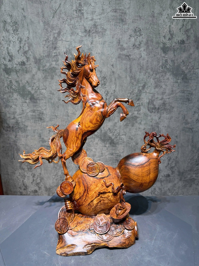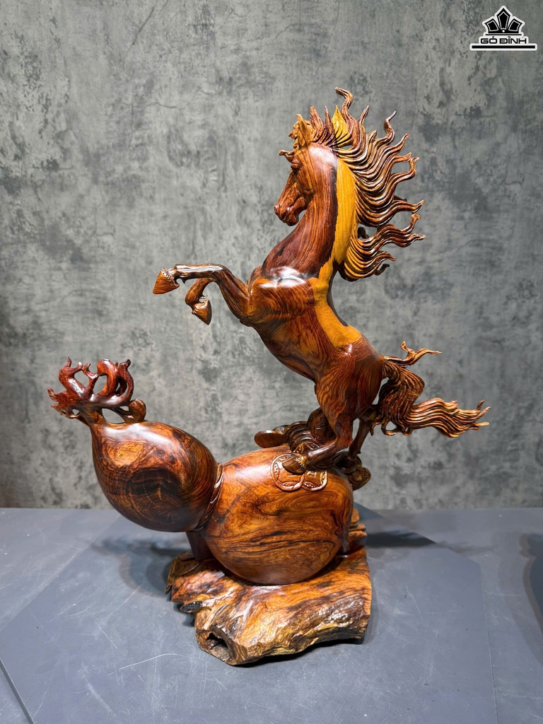Tượng Ngựa Phong Thủy (Nhất Mã Phi Thiên) Gỗ Cẩm Cao 64 Ngang 52 Sâu 20 (cm)