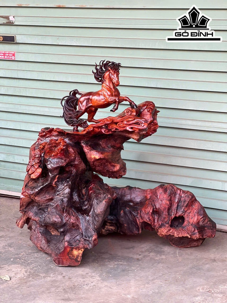 Tượng Ngựa Phong Thủy (Nhất Mã Phi Thiên) Gỗ Chun Sụn Cẩm Cao 83 Ngang 85 Sâu 60 (cm)