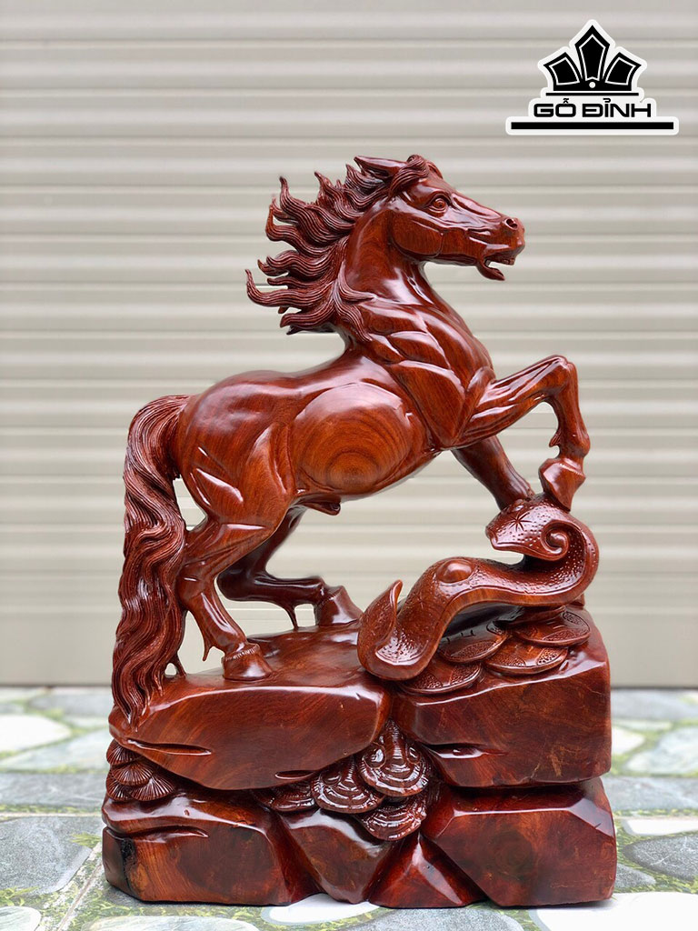 Tượng Ngựa Phong Thủy (Nhất Mã Phi Thiên) Gỗ Hương Cao 52 Ngang 35 Sâu 14 (cm)