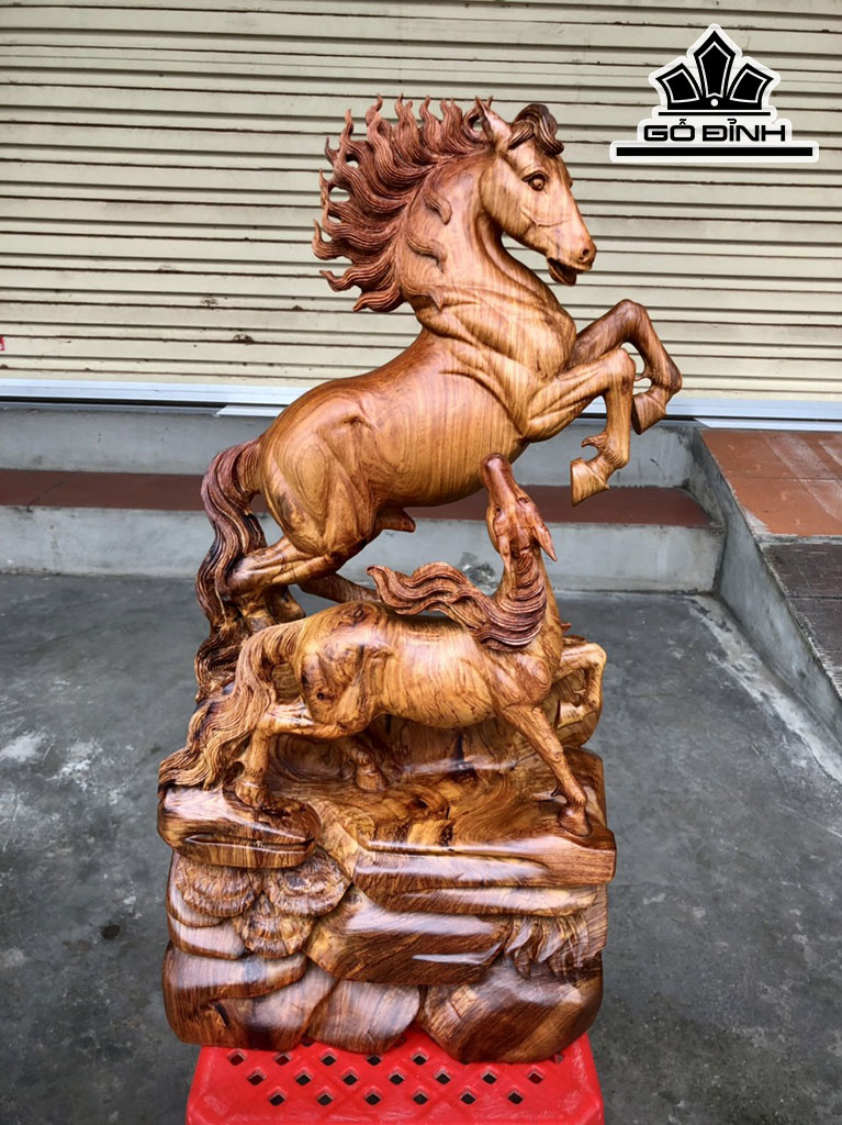 Tượng Ngựa Phong Thủy (Nhất Mã Phi Thiên) Gỗ Hương Cao 54 Ngang 32 Sâu 14 (cm)