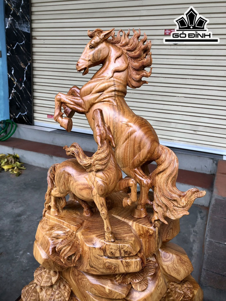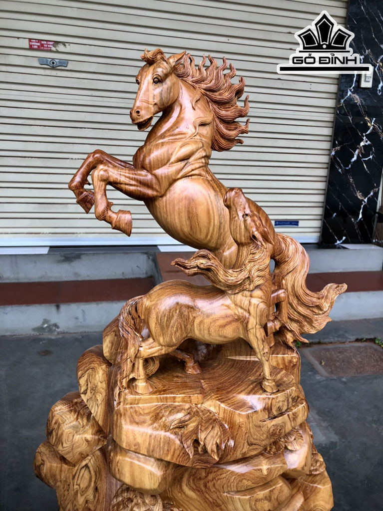 Tượng Ngựa Phong Thủy (Nhất Mã Phi Thiên) Gỗ Hương Cao 59 Ngang 42 Sâu 27 (cm)