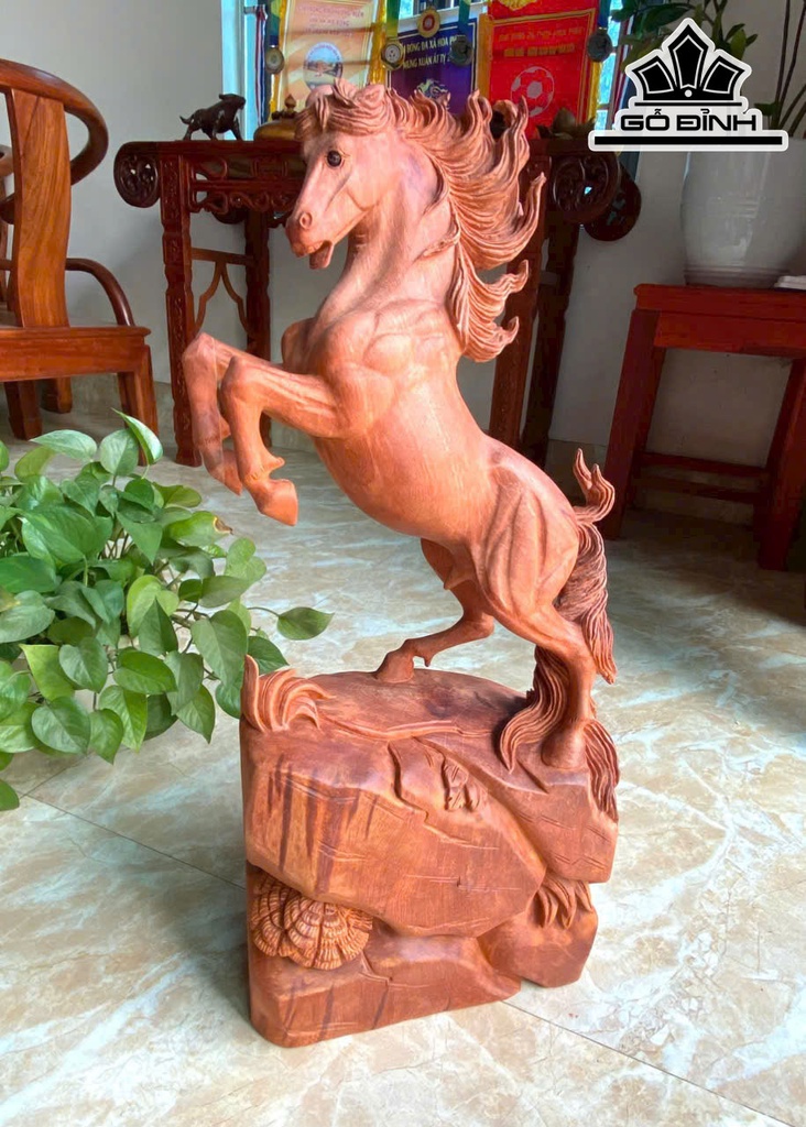 Tượng Ngựa Phong Thủy (Nhất Mã Phi Thiên) Gỗ Hương Cao 60 Ngang 27 Sâu 14 (cm)