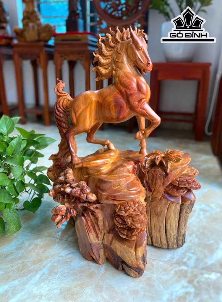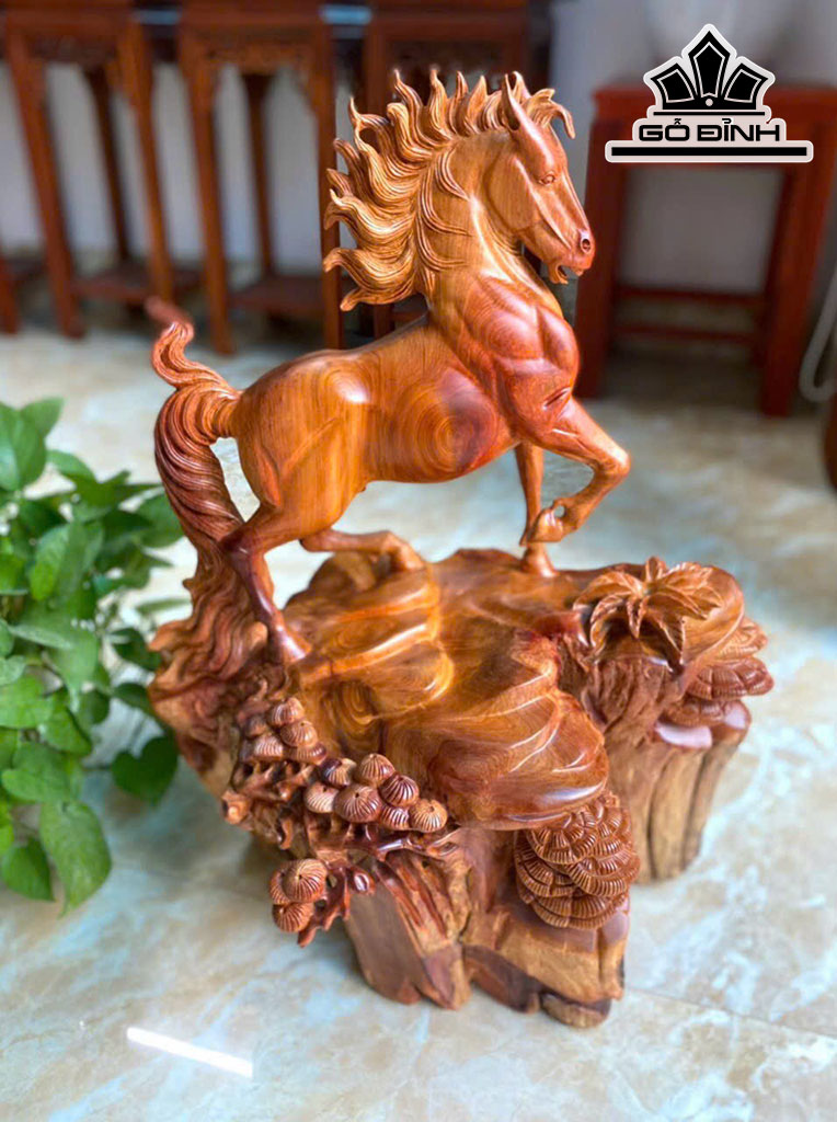 Tượng Ngựa Phong Thủy (Nhất Mã Phi Thiên) Gỗ Hương Cao 61 Ngang 45 Sâu 30 (cm)
