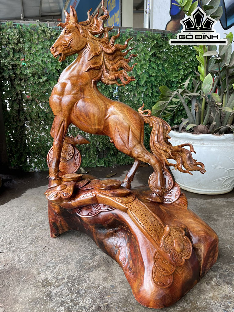 Tượng Ngựa Phong Thủy (Nhất Mã Phi Thiên) Gỗ Hương Cao 68 Ngang 52 Sâu 37 (cm)