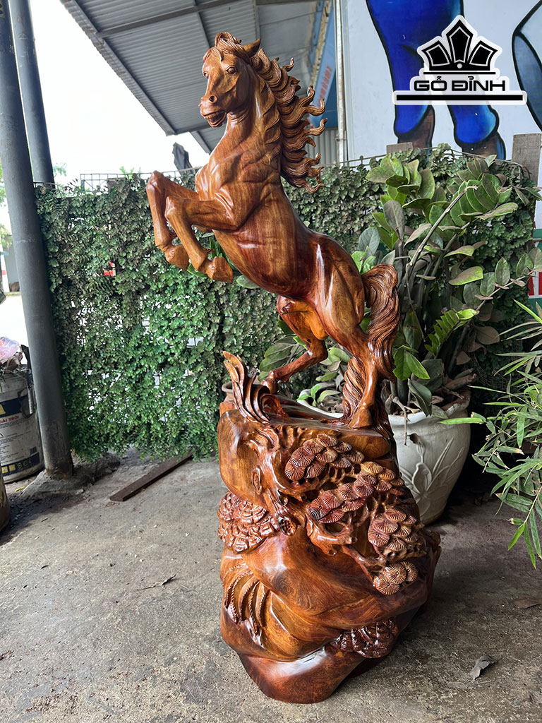 Tượng Ngựa Phong Thủy (Nhất Mã Phi Thiên) Gỗ Hương Cao 80 Ngang 43 Sâu 35 (cm)