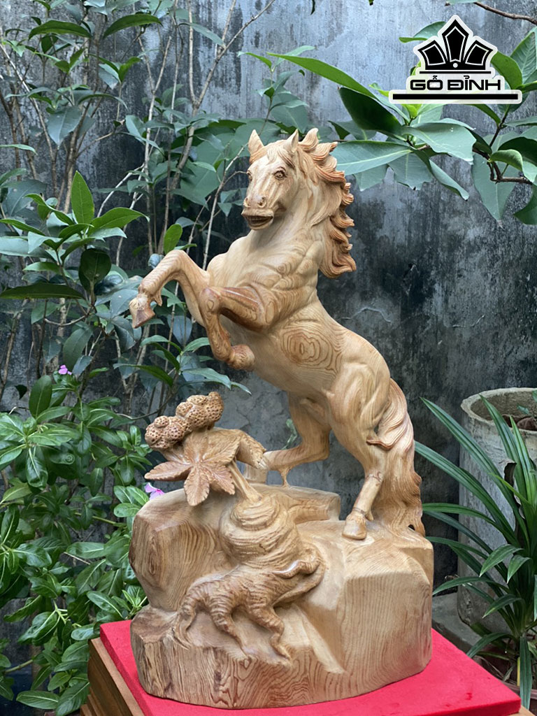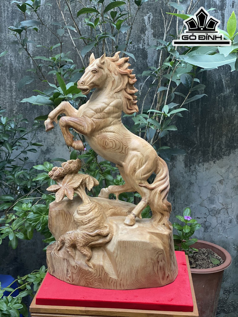 Tượng Ngựa Phong Thủy (Nhất Mã Phi Thiên) Gỗ Ngọc Am Cao 47 Ngang 28 Sâu 13 (cm)