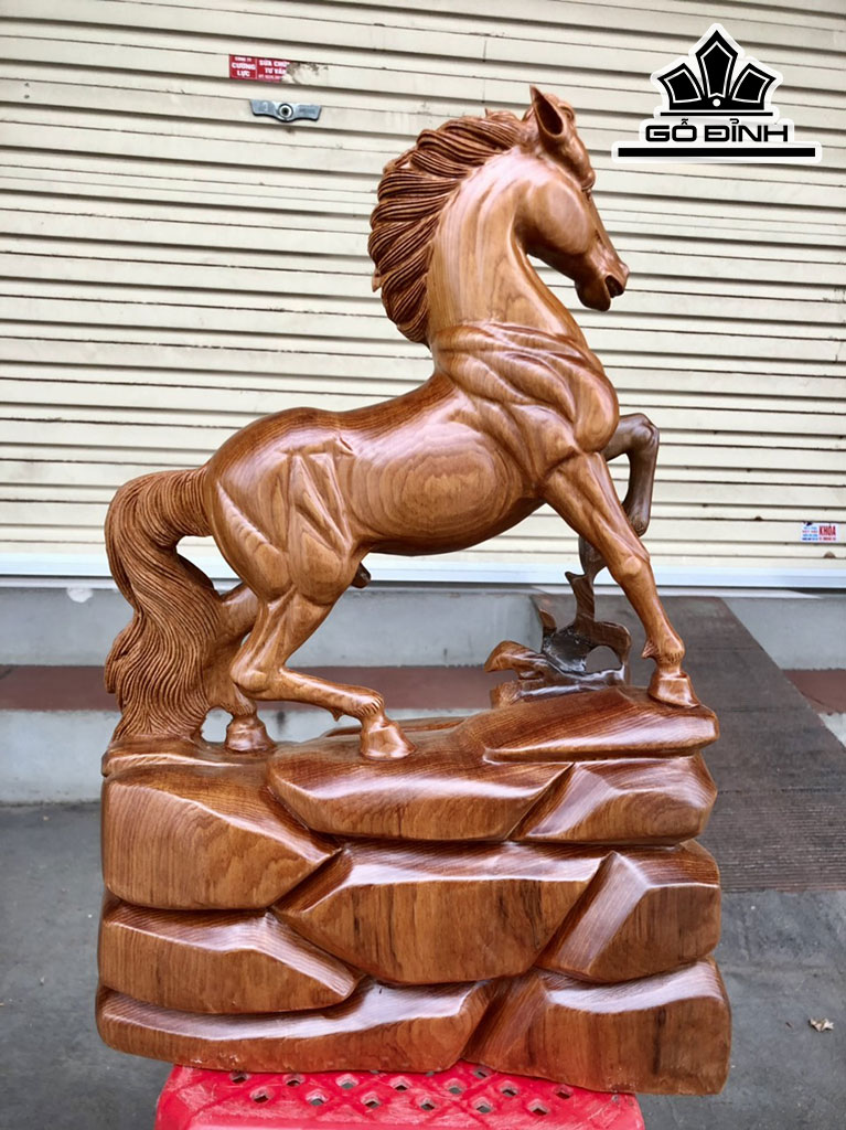 Tượng Ngựa Phong Thủy (Nhất Mã Phi Thiên) Gỗ Ngọc Am Cao 48 Ngang 34 Sâu 13 (cm)