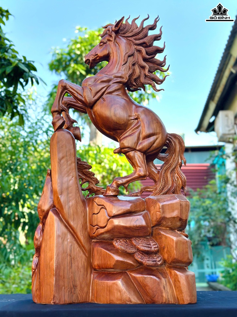 Tượng Ngựa Phong Thủy (Nhất Mã Phi Thiên) Gỗ Ngọc Am Cao 74 Ngang 40 Sâu 21 (cm)