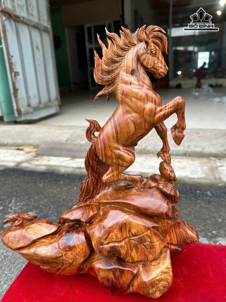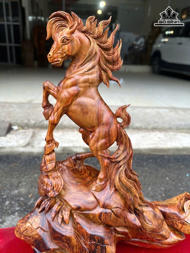 Tượng Ngựa Phong Thủy (Nhất Mã Phi Thiên) Gỗ Sưa Cao 41 Ngang 35 Sâu 20 (cm)
