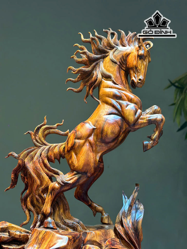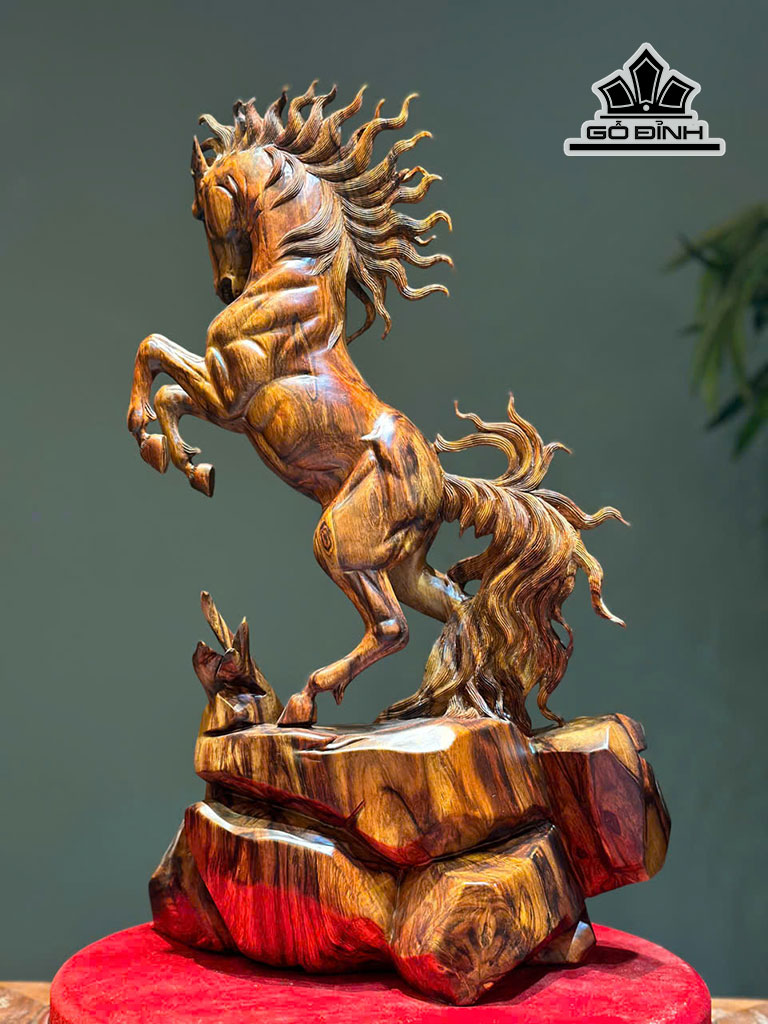 Tượng Ngựa Phong Thủy (Nhất Mã Phi Thiên) Gỗ Sưa Cao 55 Ngang 34 Sâu 20 (cm)
