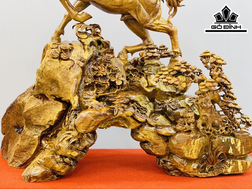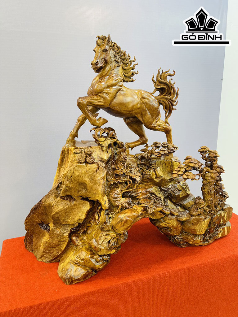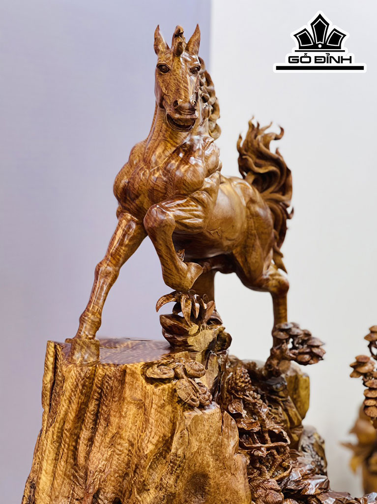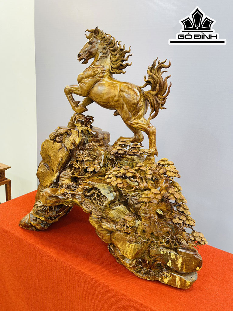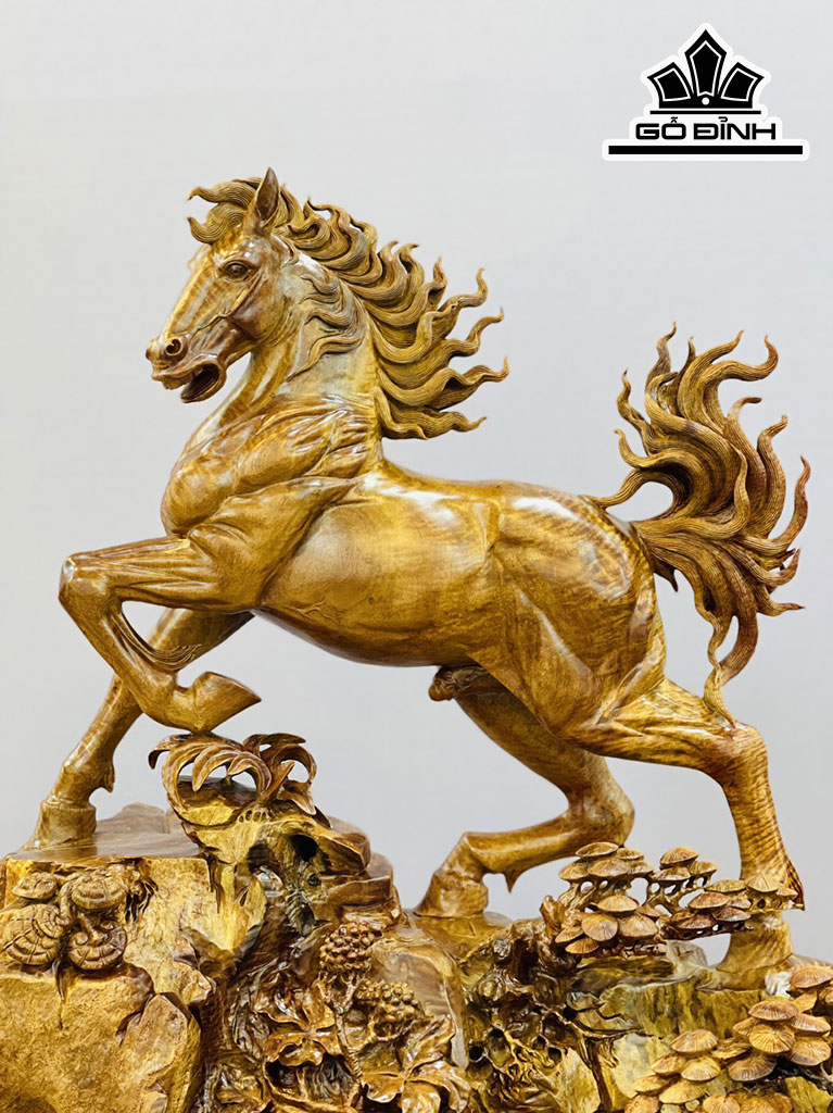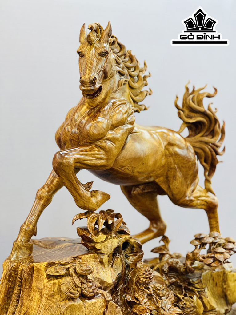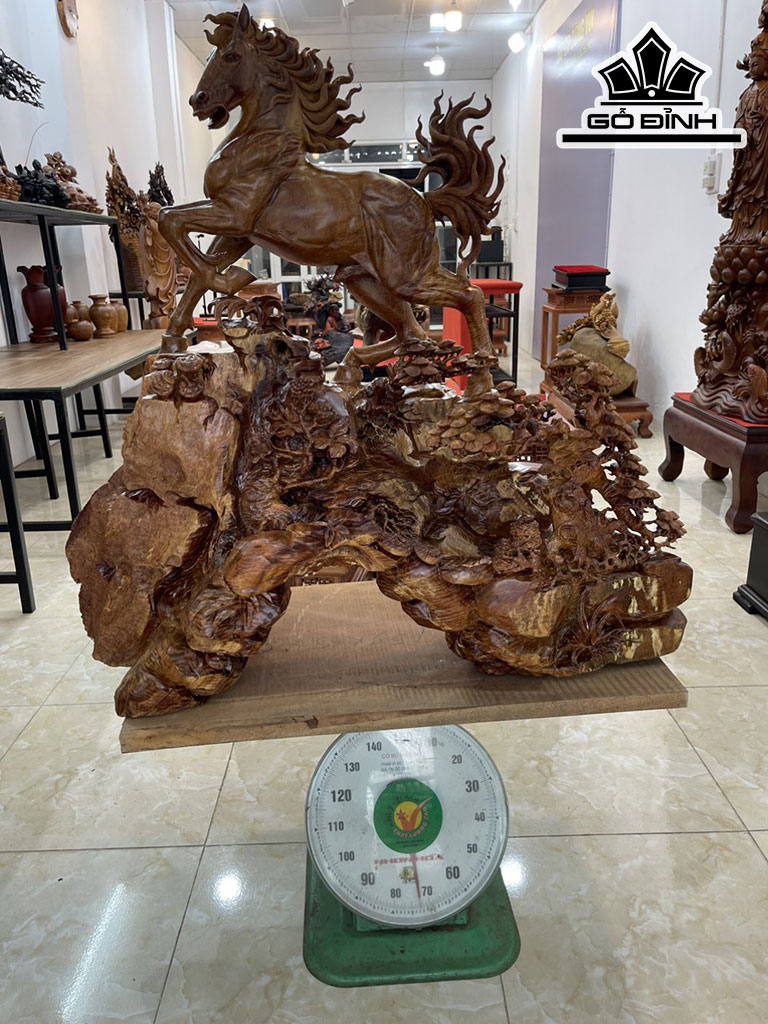 Tượng Ngựa Phong Thủy (Nhất Mã Phi Thiên) Gỗ Sụn Hương Cao 95 Ngang 102 Sâu 42 (cm)
