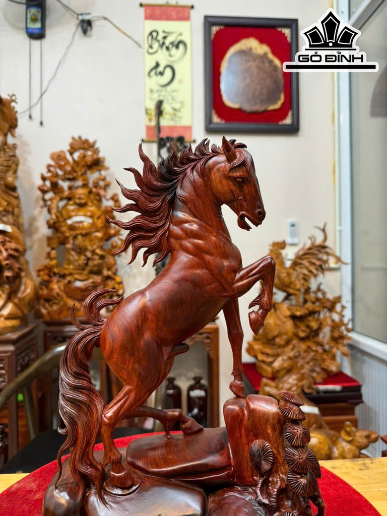 Tượng Ngựa Phong Thủy (Nhất Mã Phi Thiên) Gỗ Trắc Cao 43 Ngang 26 Sâu 16 (cm)