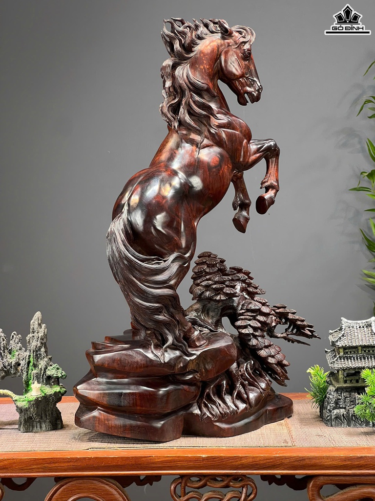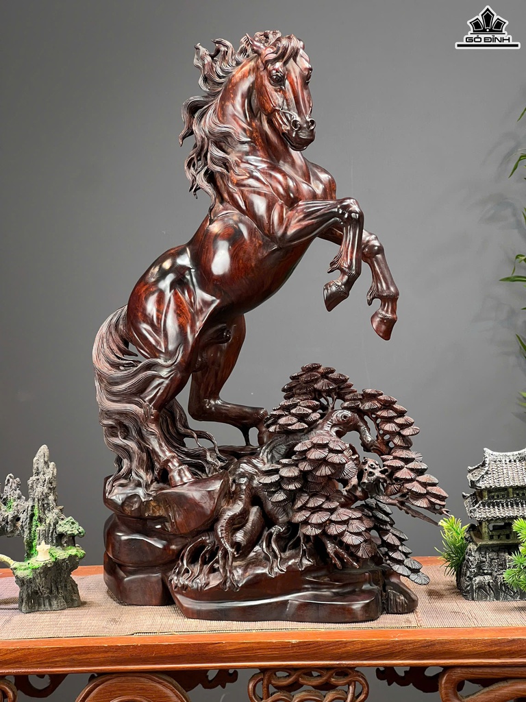 Tượng Ngựa Phong Thủy (Nhất Mã Phi Thiên) Gỗ Trắc Cao 59 Ngang 41 Sâu 20 (cm)
