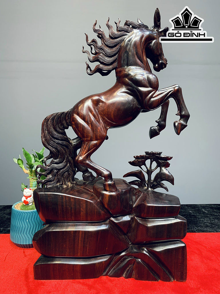 Tượng Ngựa Phong Thủy (Nhất Mã Phi Thiên) Gỗ Tử Đàn Cao 52 Ngang 32 Sâu 16 (cm)