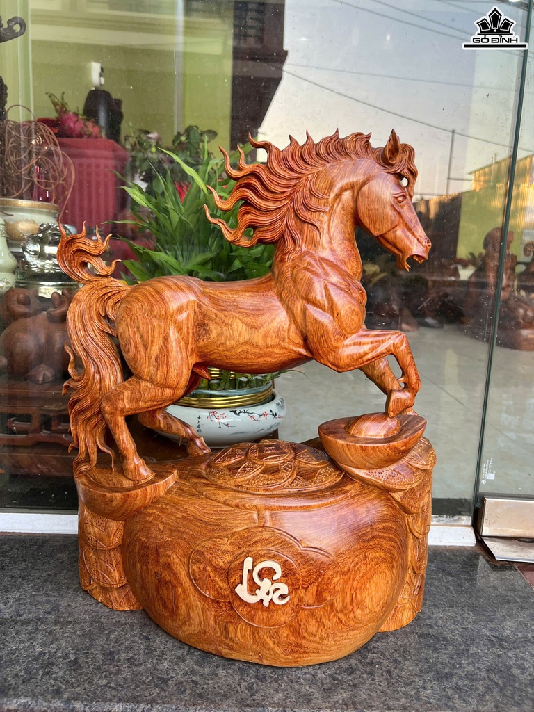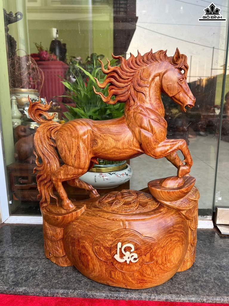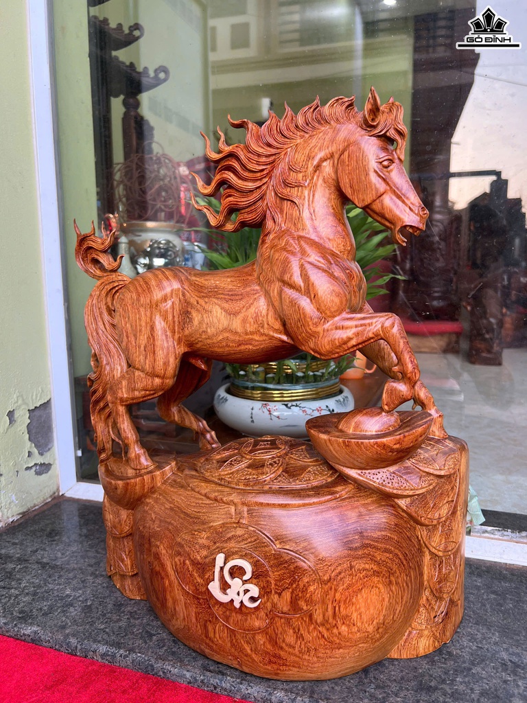 Tượng Ngựa Phong Thủy (Nhất Mã Thong Dong) Gỗ Hương Cao 48 Ngang 40 Sâu 18 (cm)