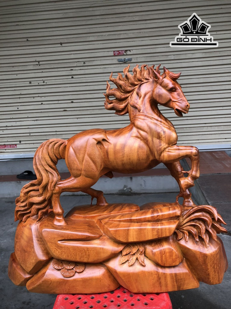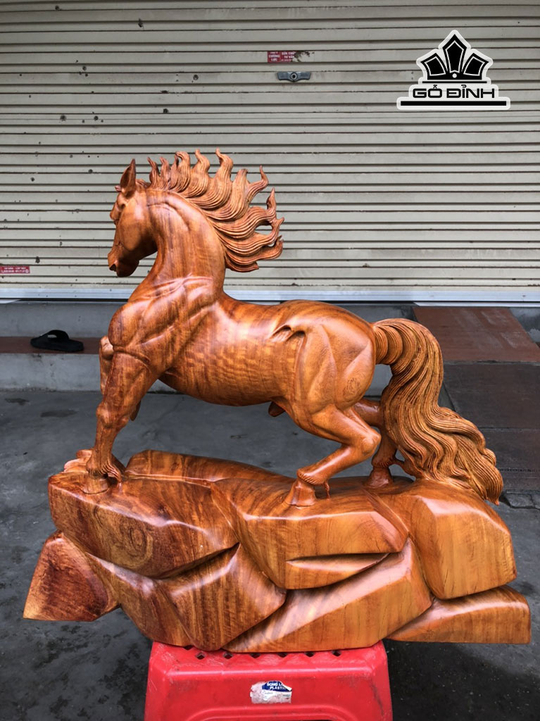Tượng Ngựa Phong Thủy (Nhất Mã Thong Dong) Gỗ Hương Cao 48 Ngang 54 Sâu 13 (cm)