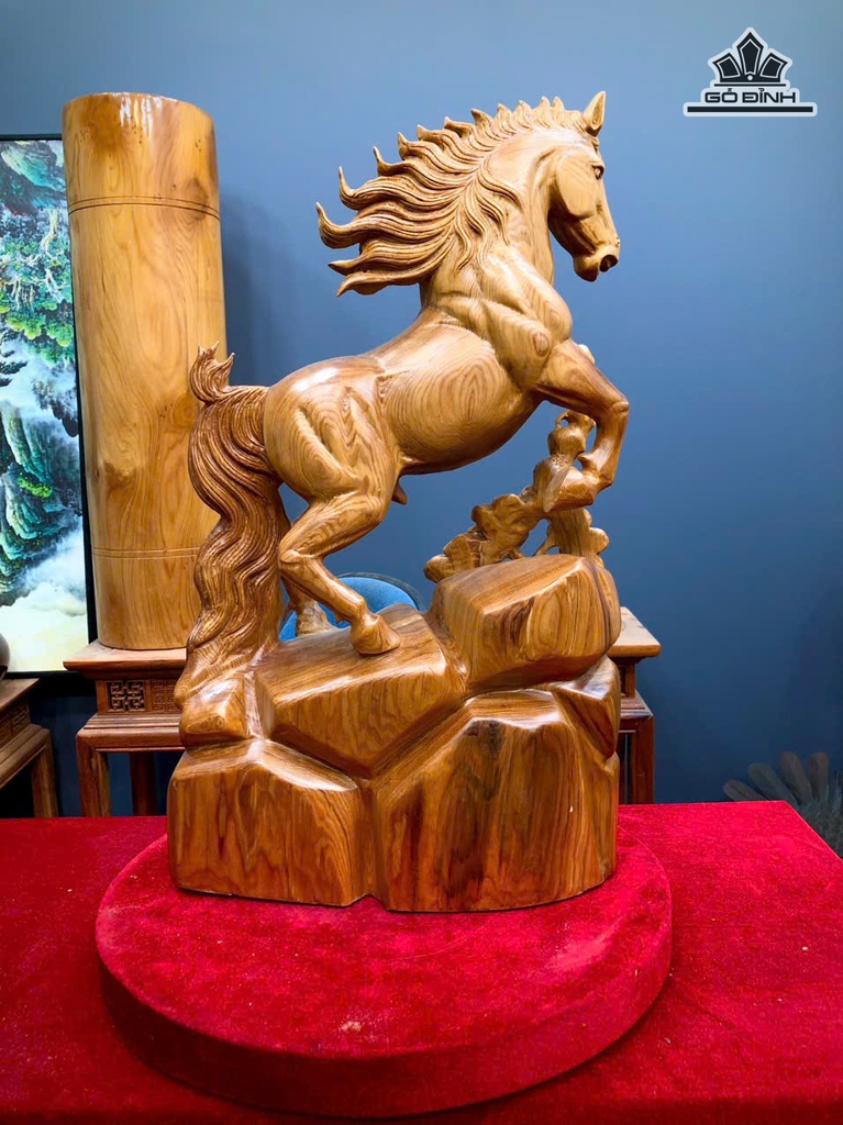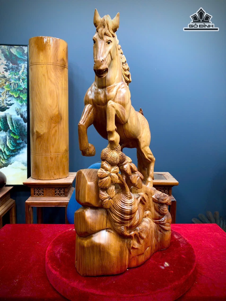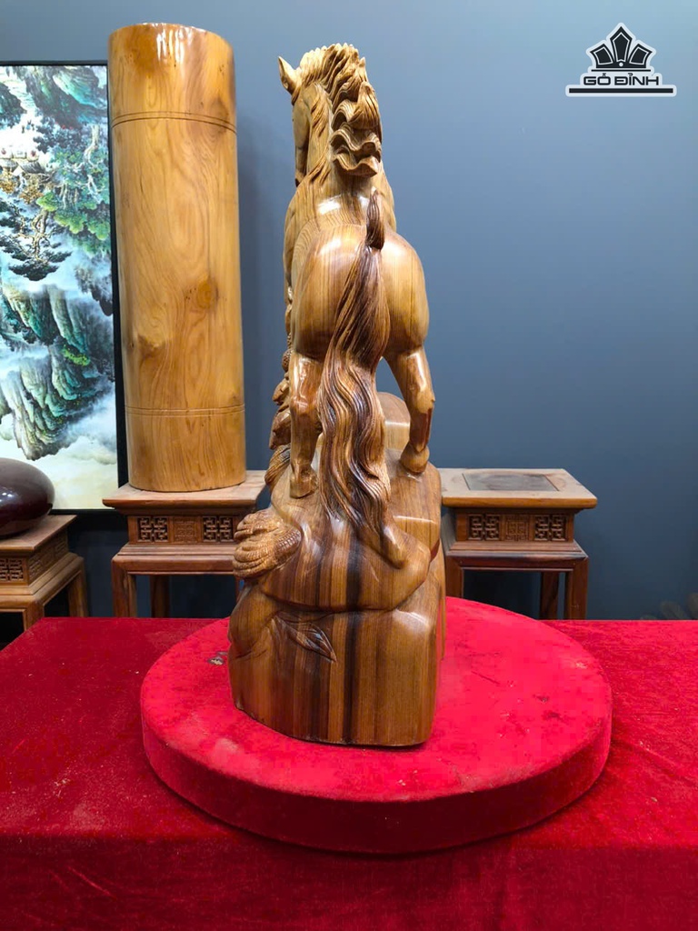 Tượng Ngựa Phong Thủy (Nhất Mã Thong Dong) Gỗ Ngọc Am Cao 56 Ngang 35 Sâu 19 (cm)