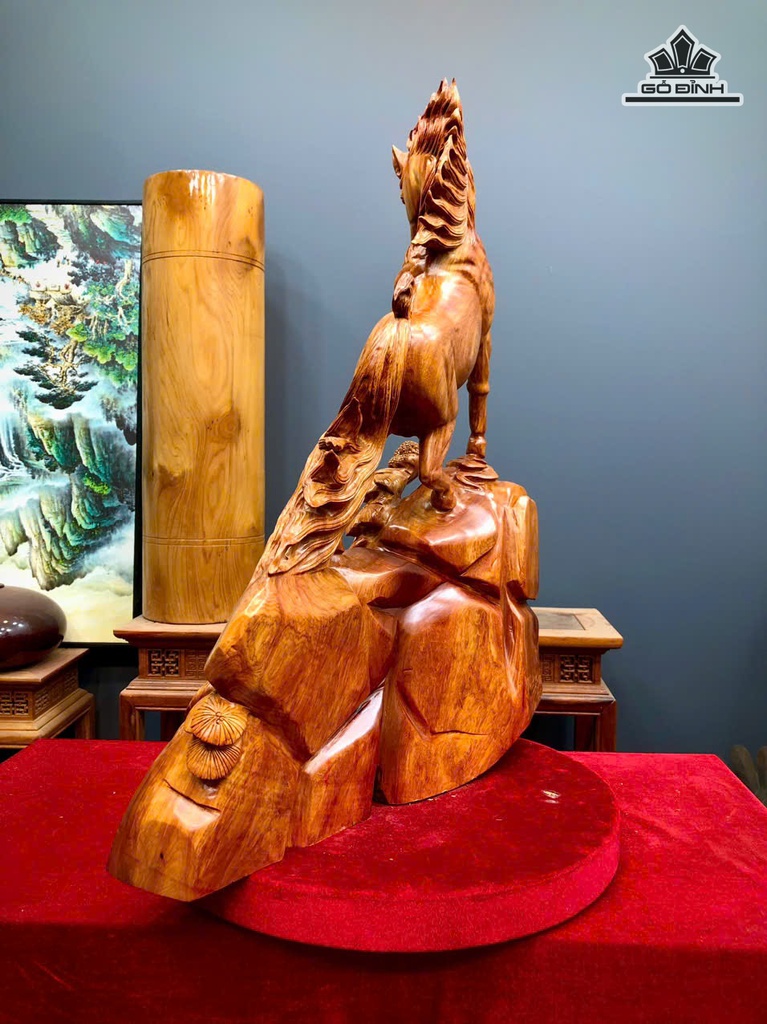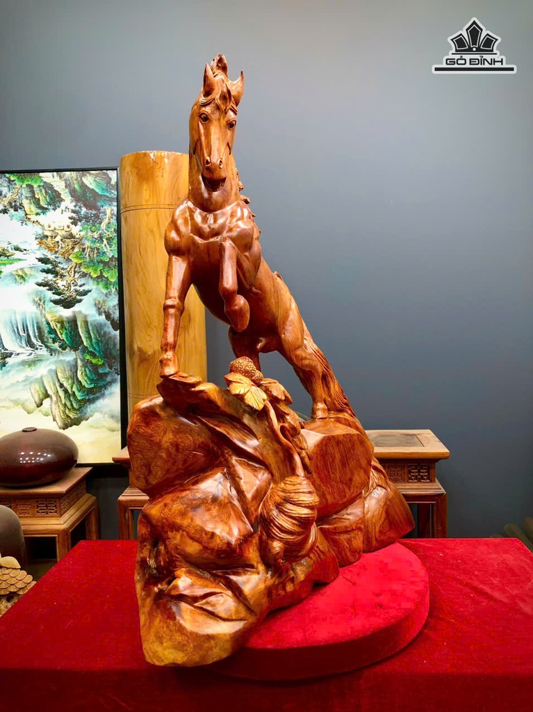 Tượng Ngựa Phong Thủy (Nhất Mã Thong Dong) Gỗ Ngọc Am Cao 70 Ngang 52 Sâu 21 (cm)