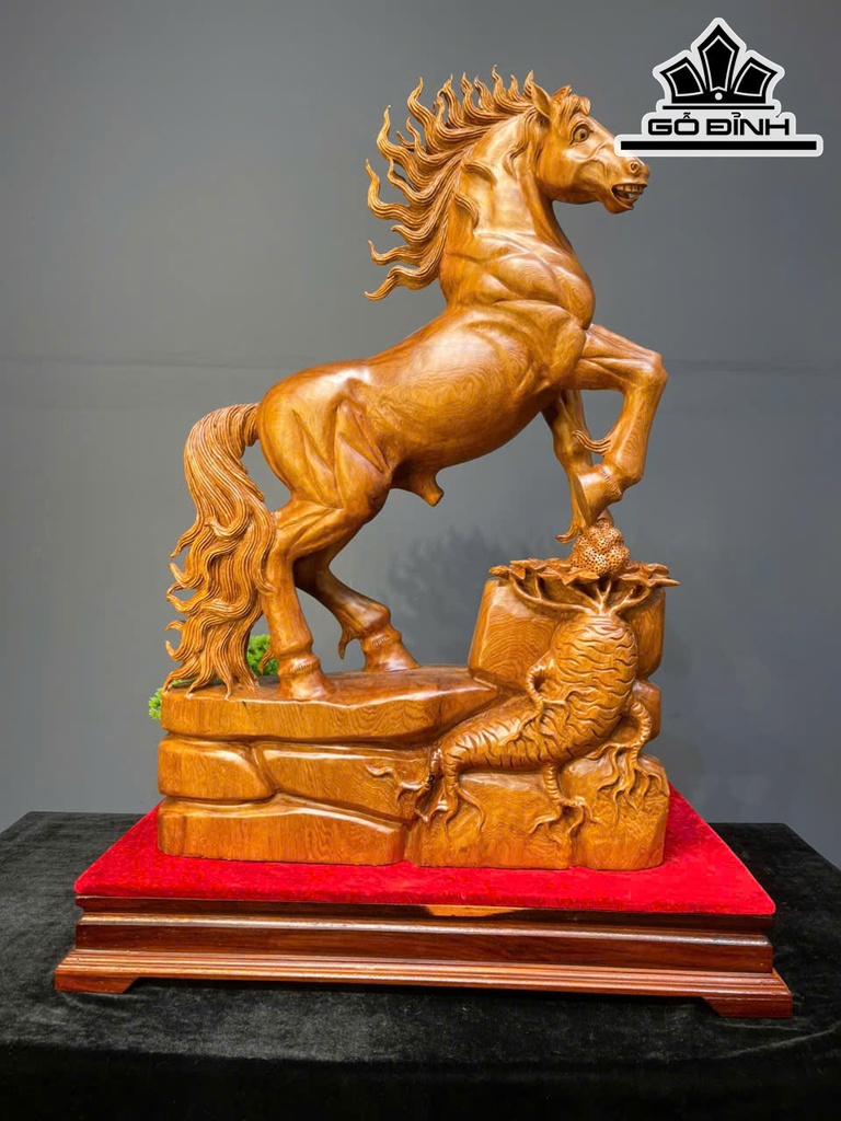 Tượng Ngựa Phong Thủy (Nhất Mã Thong Dong) Gỗ Ngọc Am Cao 90 Ngang 60 Sâu 17 (cm)