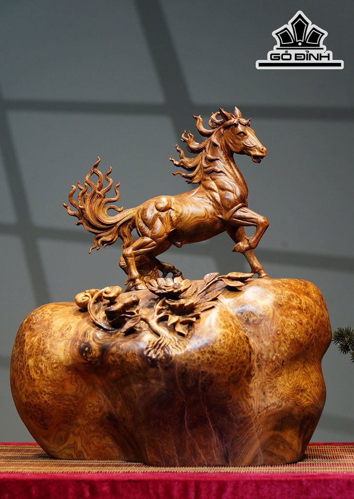 Tượng Ngựa Phong Thủy (Nhất Mã Thong Dong) Gỗ Nu Hương Cao 42 Ngang 40 Sâu 28 (cm)