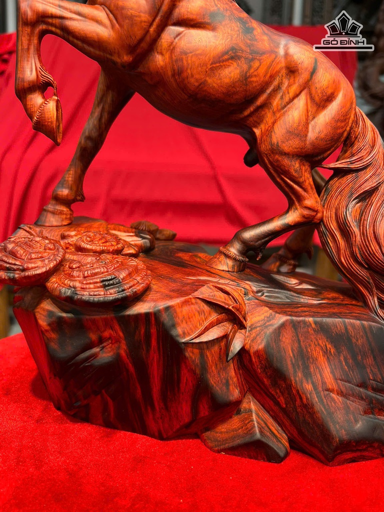 Tượng Ngựa Phong Thủy (Nhất Mã Thong Dong) Gỗ Trắc Cao 35 Ngang 32 Sâu 18 (cm)
