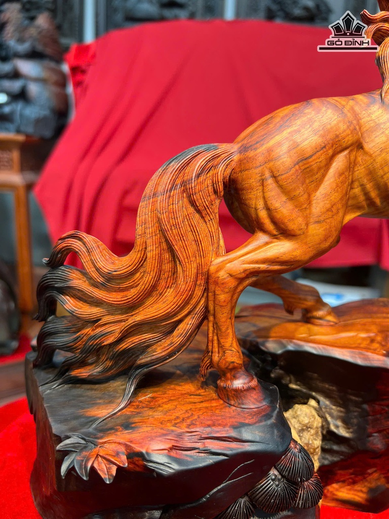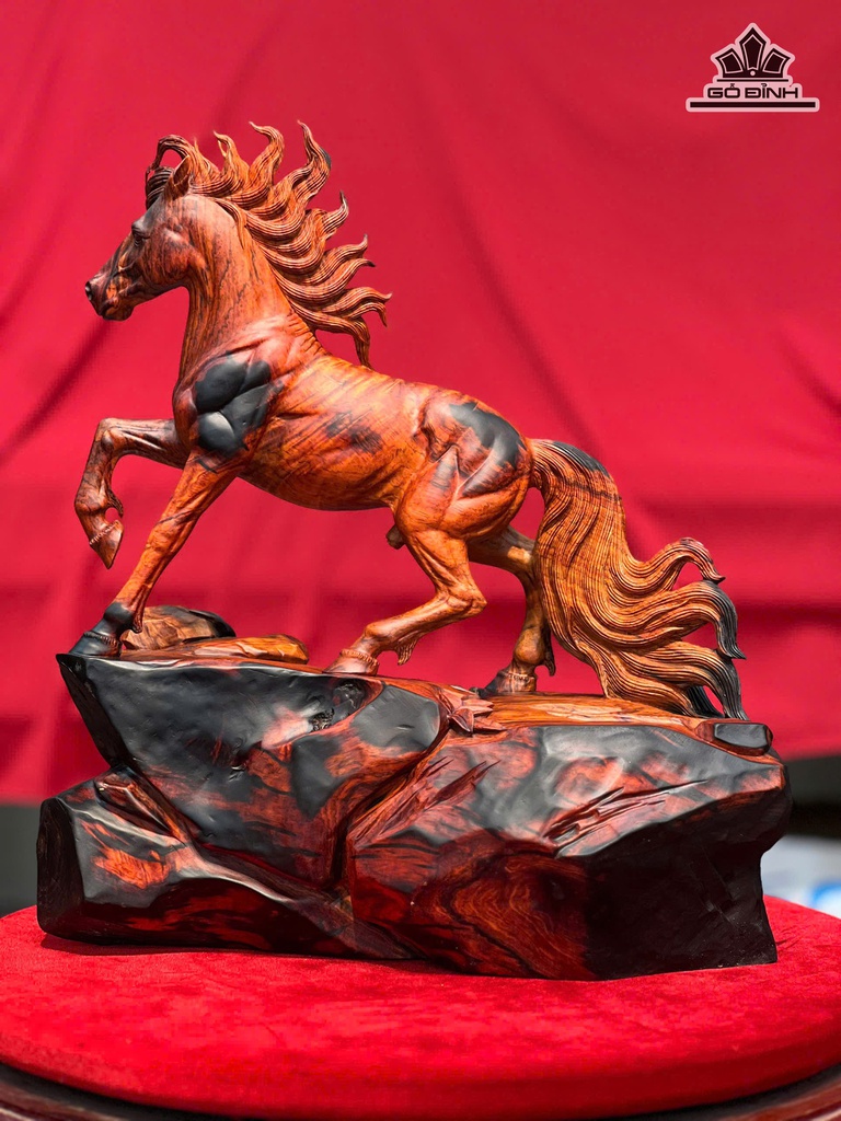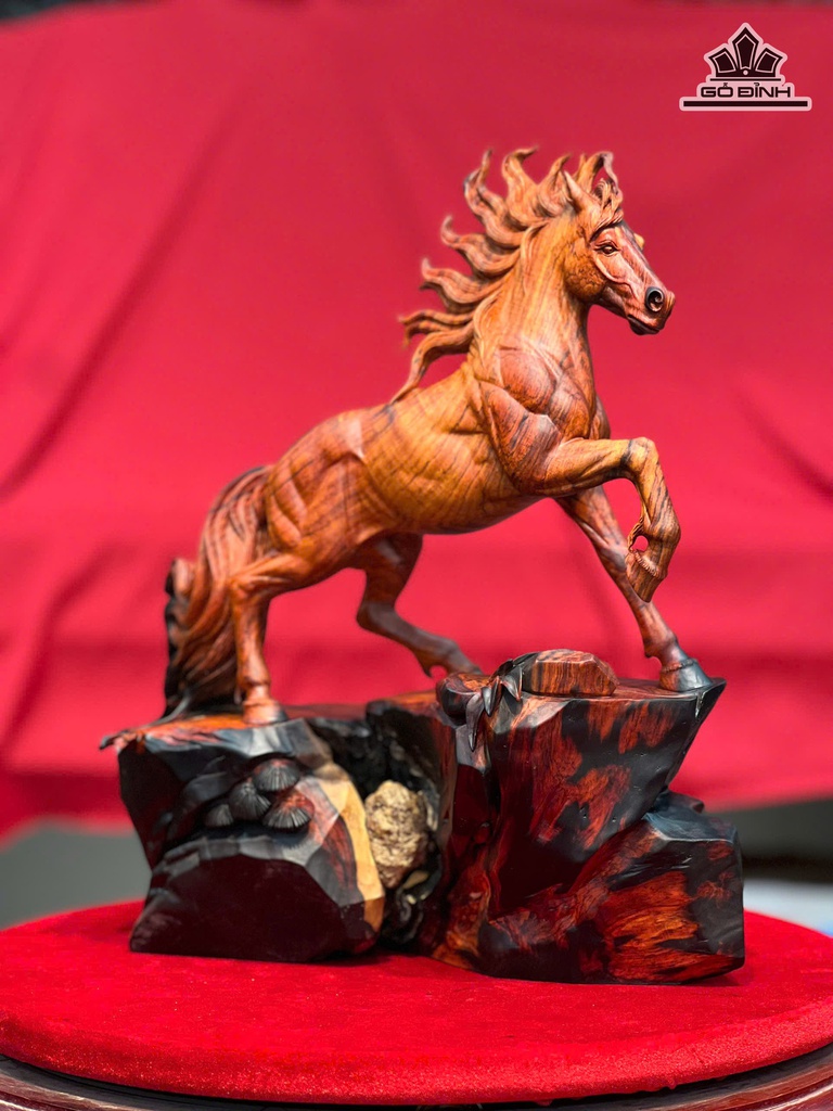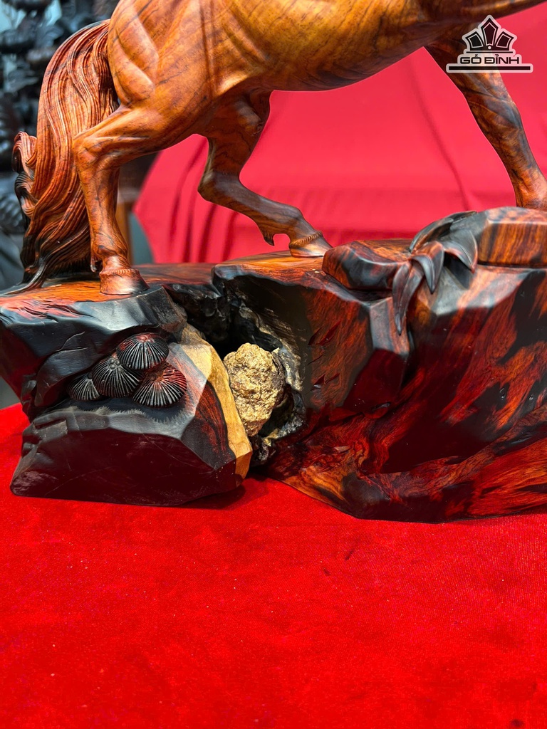 Tượng Ngựa Phong Thủy (Nhất Mã Thong Dong) Gỗ Trắc Cao 35 Ngang 32 Sâu 18(cm)