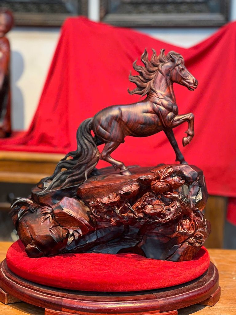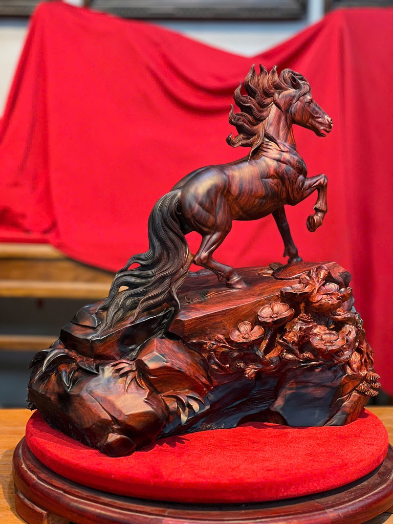 Tượng Ngựa Phong Thủy (Nhất Mã Thong Dong) Gỗ Trắc Cao 41 Ngang 41 Sâu 27 (cm)