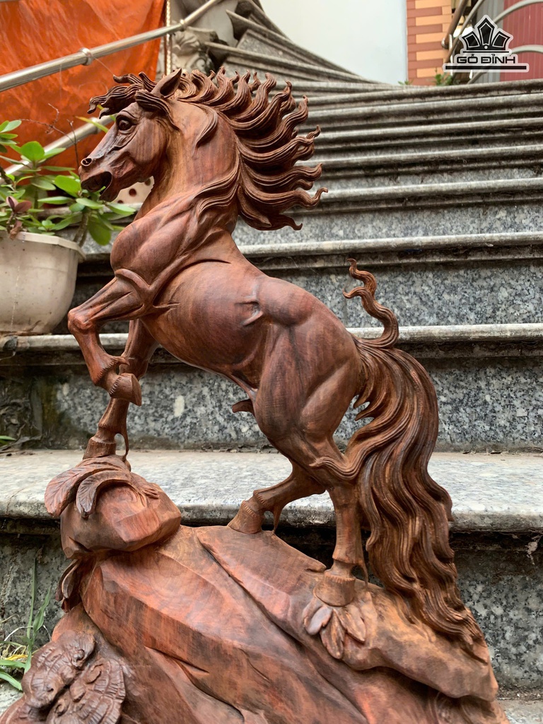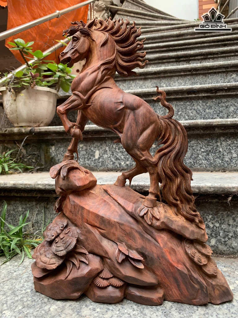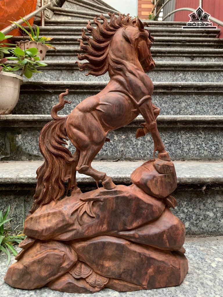 Tượng Ngựa Phong Thủy (Nhất Mã Thong Dong) Gỗ Trắc Cao 46 Ngang 32 Sâu 10 (cm)