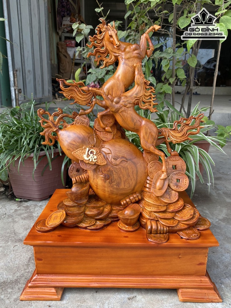 Tượng Ngựa Phong Thuy (Song Mã) Gỗ Hương Việt