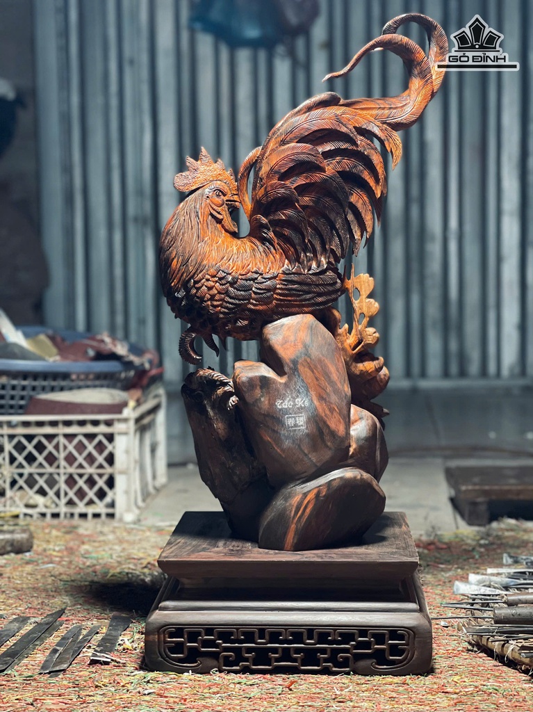 Tượng Nhất Bảo Kim Kê Gỗ Trắc Cao Riêng Tượng 47x26x14 (cm) - Cả Kỷ 22x22x10 (cm)