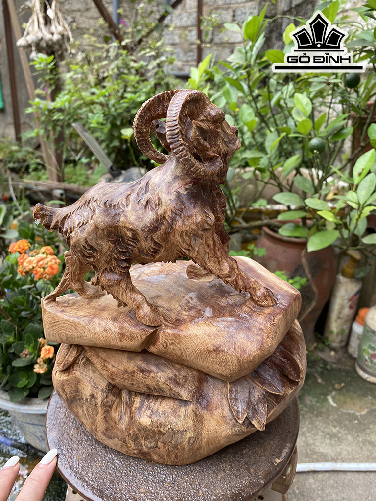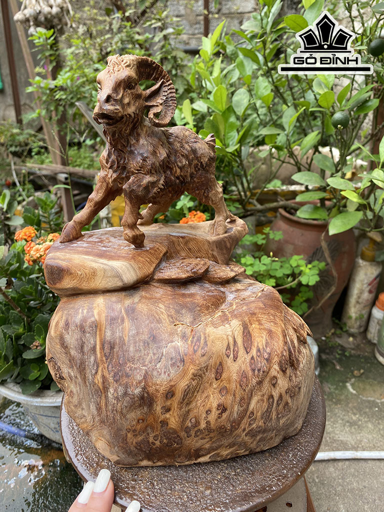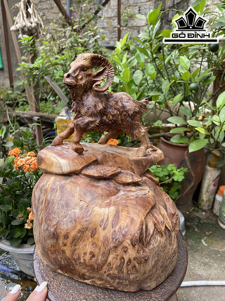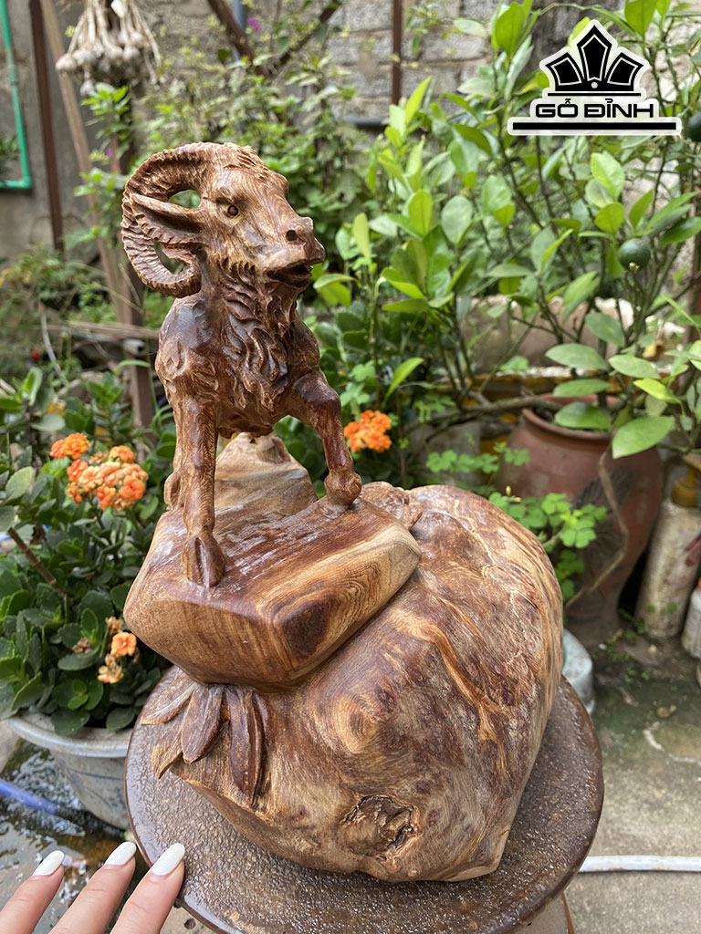 Tượng Nhất Dương Phong Thủy Gỗ Nu Ngọc Am Cao 22 Ngang 25,5 Sâu 17 (cm)