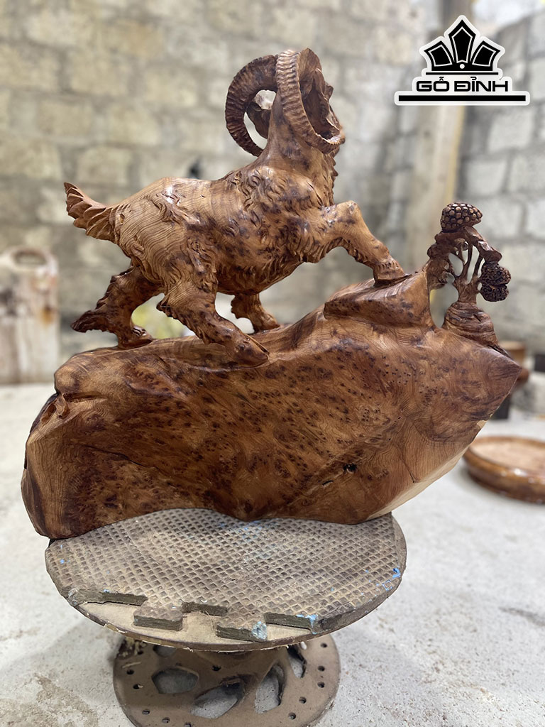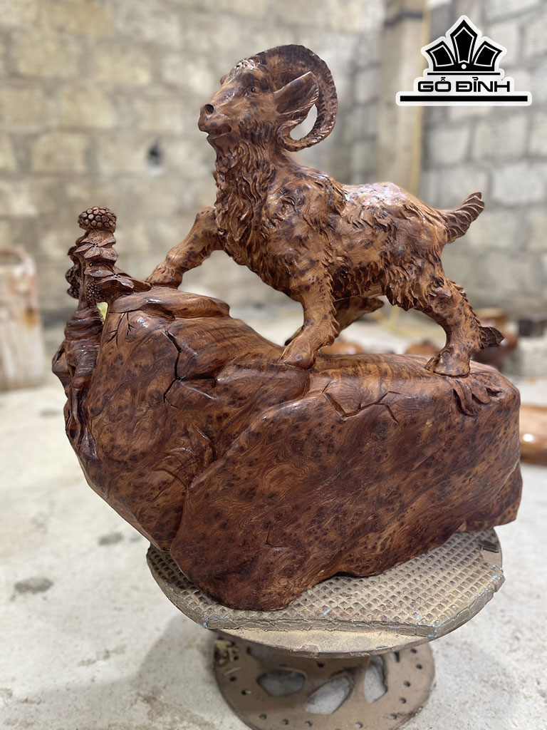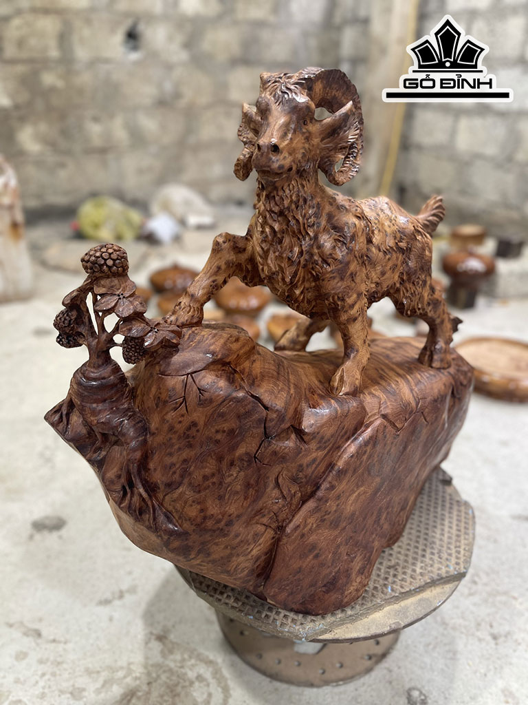 Tượng Nhất Dương Phong Thủy Gỗ Nu Ngọc Am Cao 40 Ngang 40 Sâu 16 (cm)