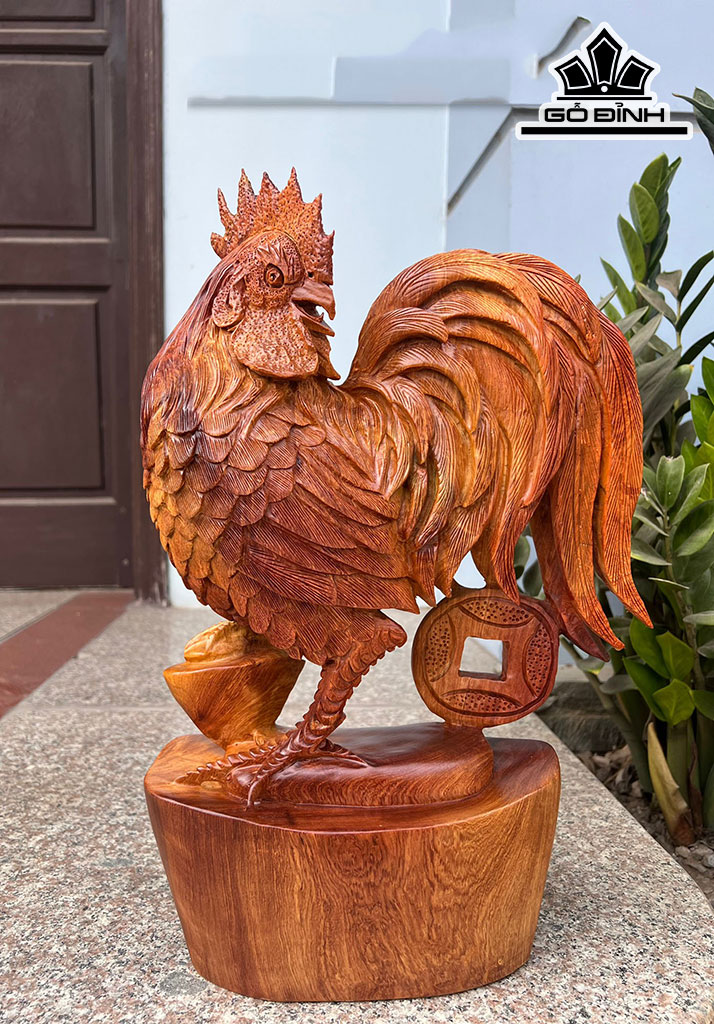 Tượng Nhất Kê Đứng Tiền Vàng Gỗ Hương Cao 46 Ngang 30 Sâu 15 (cm)